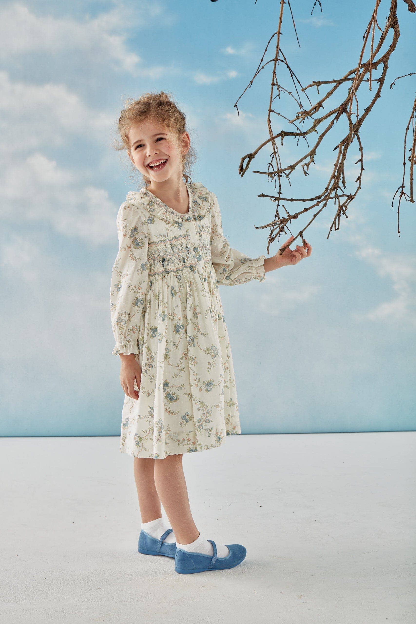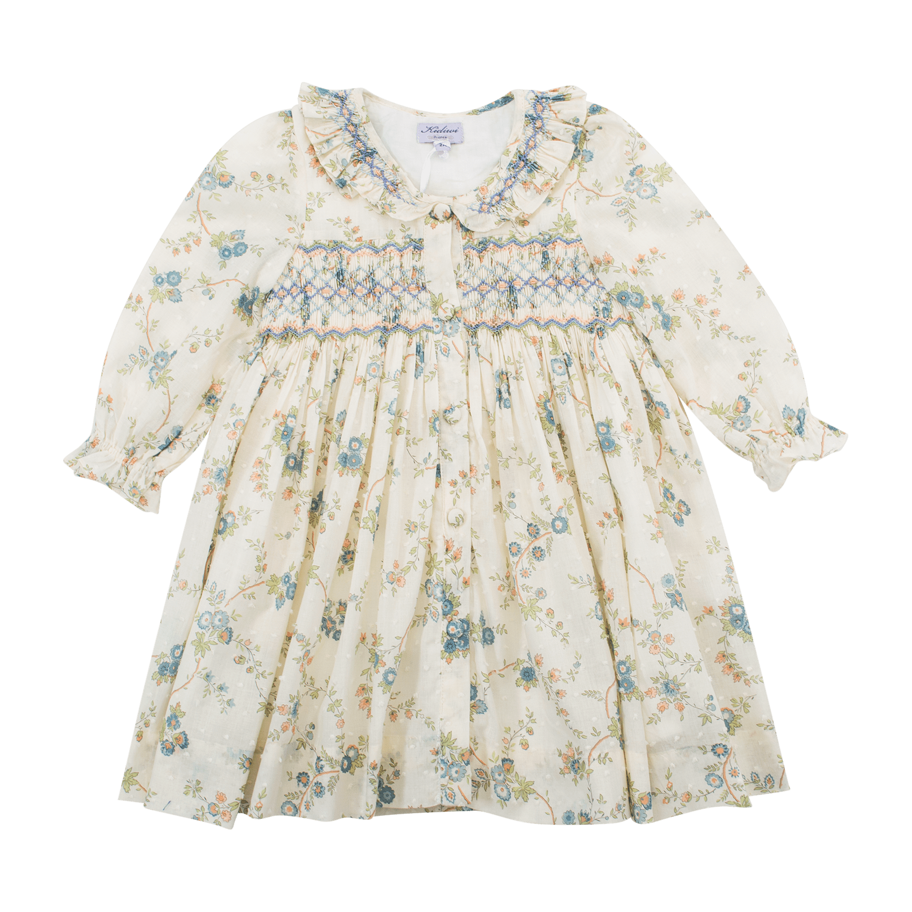 Its Kidiwi signature, its smocked ruffled collar, and its smocked waist.