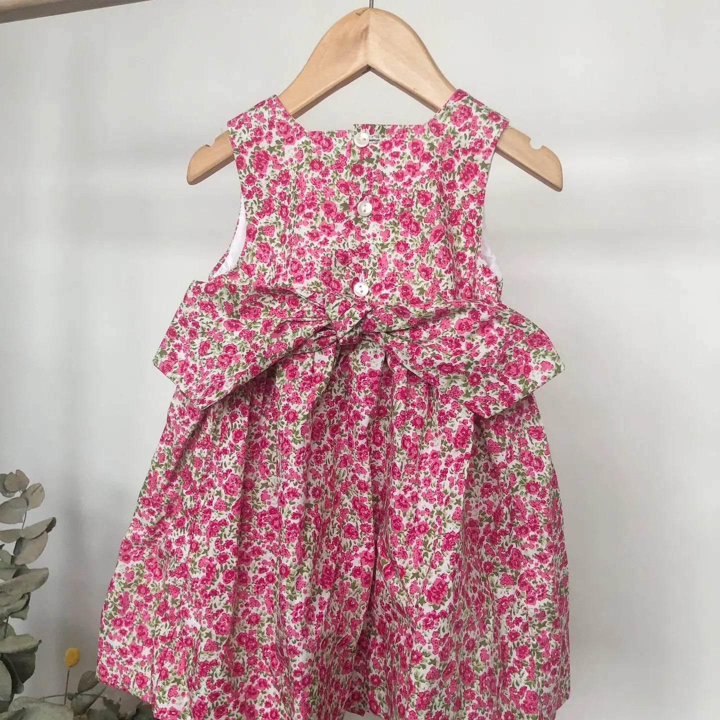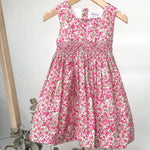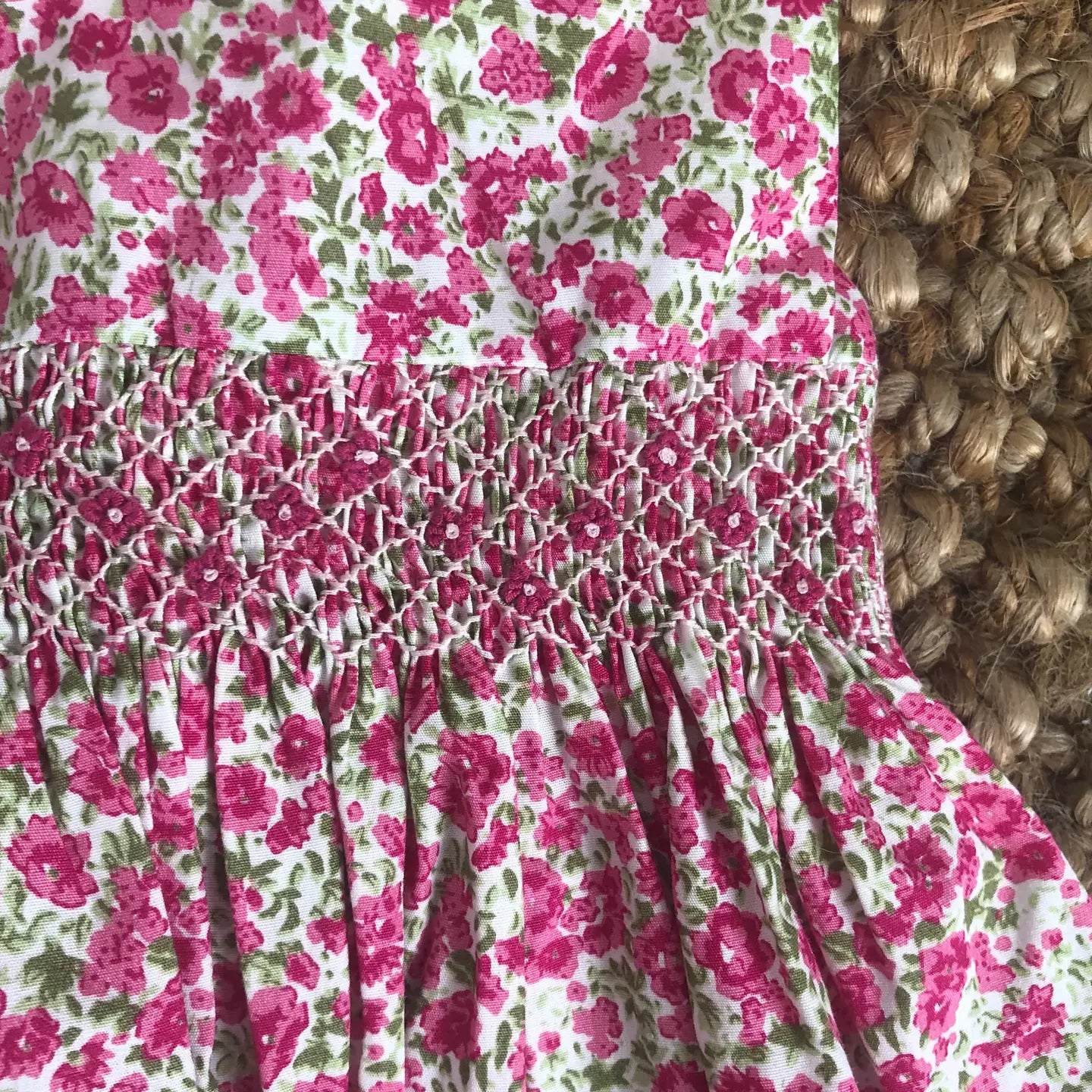 Anaïs is a lovely sleeveless dress made in a pretty EXCLUSIVE KIDIWI floral fuchsia pink print. It is hand-smocked at the waist. Very soft and light for this summer.