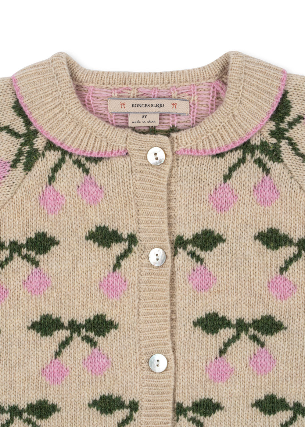 Soft and warm cardigan in a chunky wool blend. Finished with rib edges, a round collar, and mother of pearl buttons in front.