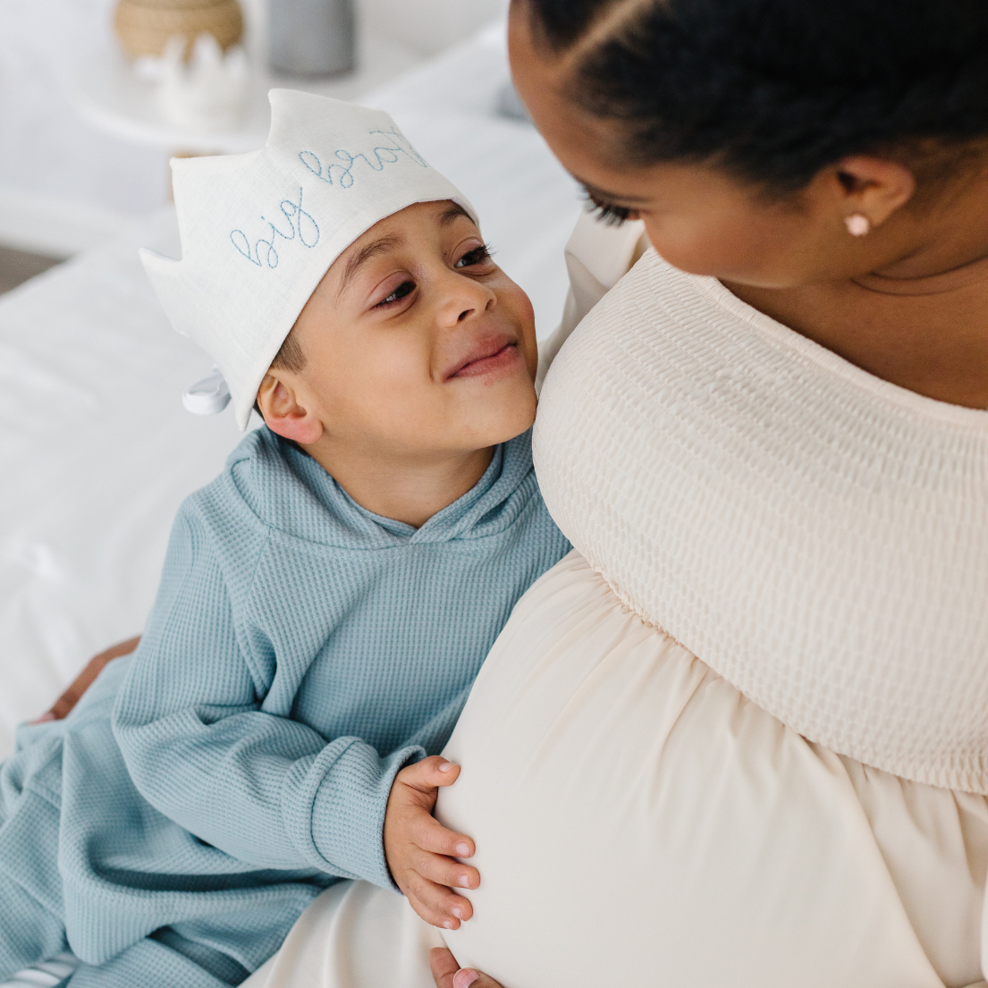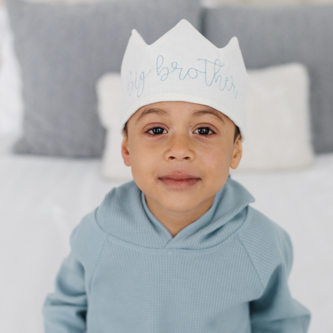 Introducing the New Big Brother Crown: a loving, special, and unique gift from baby to big brother…and the perfect way to show how proud you are! The crown is lovingly crafted with luxurious embroidered linen for maximum comfort and style. And when he wears it, your little guy will instantly recognize how much you—and your new baby—care about him!