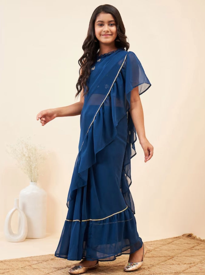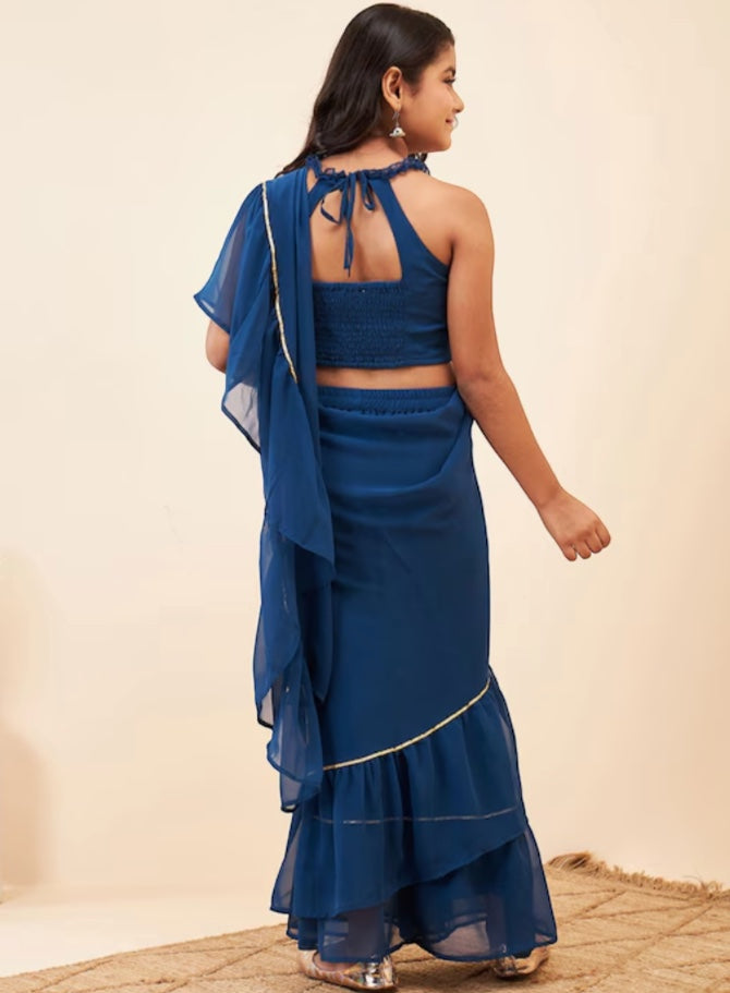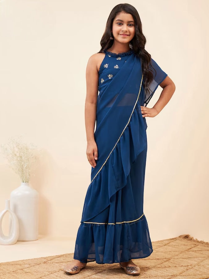 Prestitched Blouse with matching prestitched saree for easy wear.