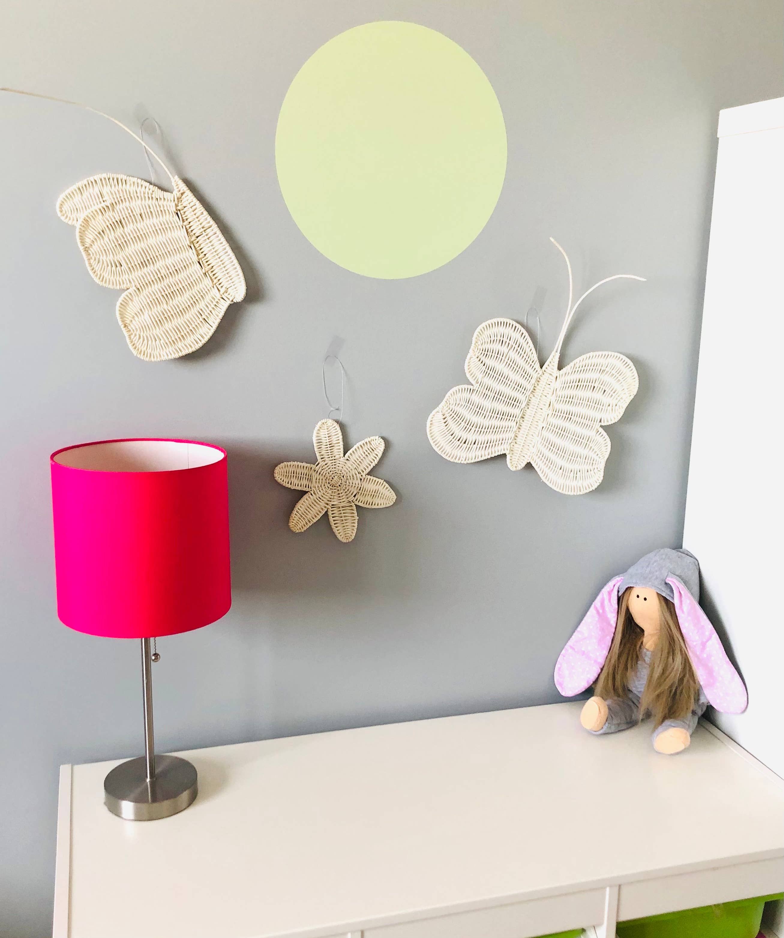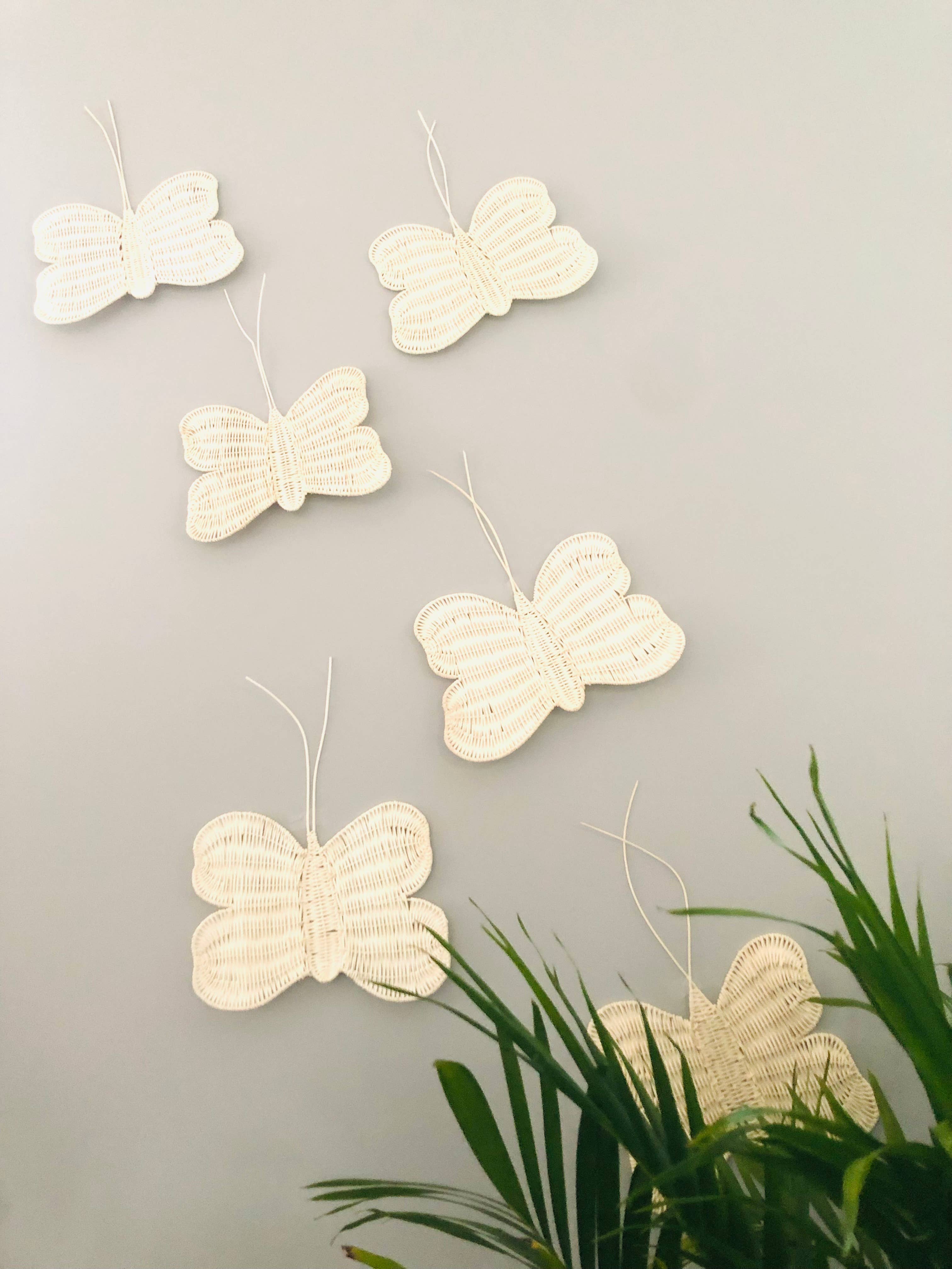 Add that extra touch to your nursery or any other space with these handmade butterflies and flowers. These butterflies and flowers have been handwoven from natural rattan that means each one will be unique and may have some imperfections. As rattan is a natural material, it can have some color variations, but these are normal features.
