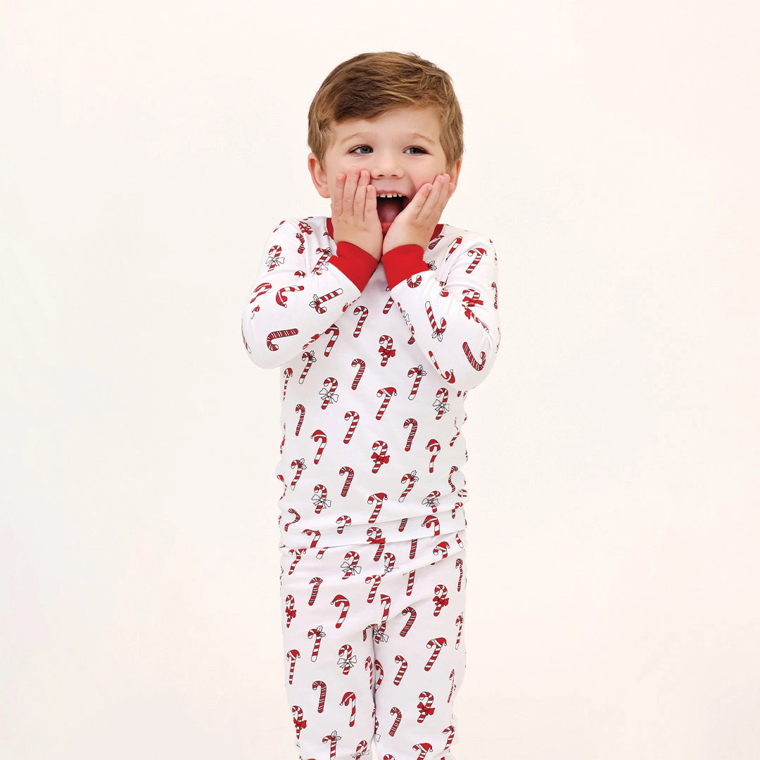 Make this Christmas extra cheerful with our pajamas designed to make the Holiday season ultra soft and special! Featuring candy canes, our two piece pajama is perfect to match baby brothers and baby sisters alike. Also available in bigger sizes for girls and boys for family matching.
