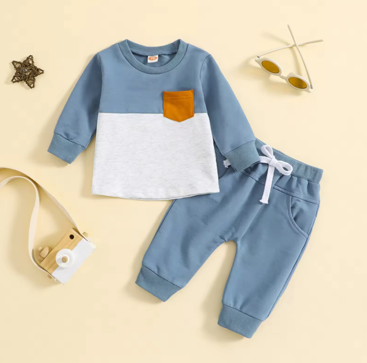 Long sleeve Sweatshirt with Left Breast Pocket and Elastic Waist Pants with 2 pockets.