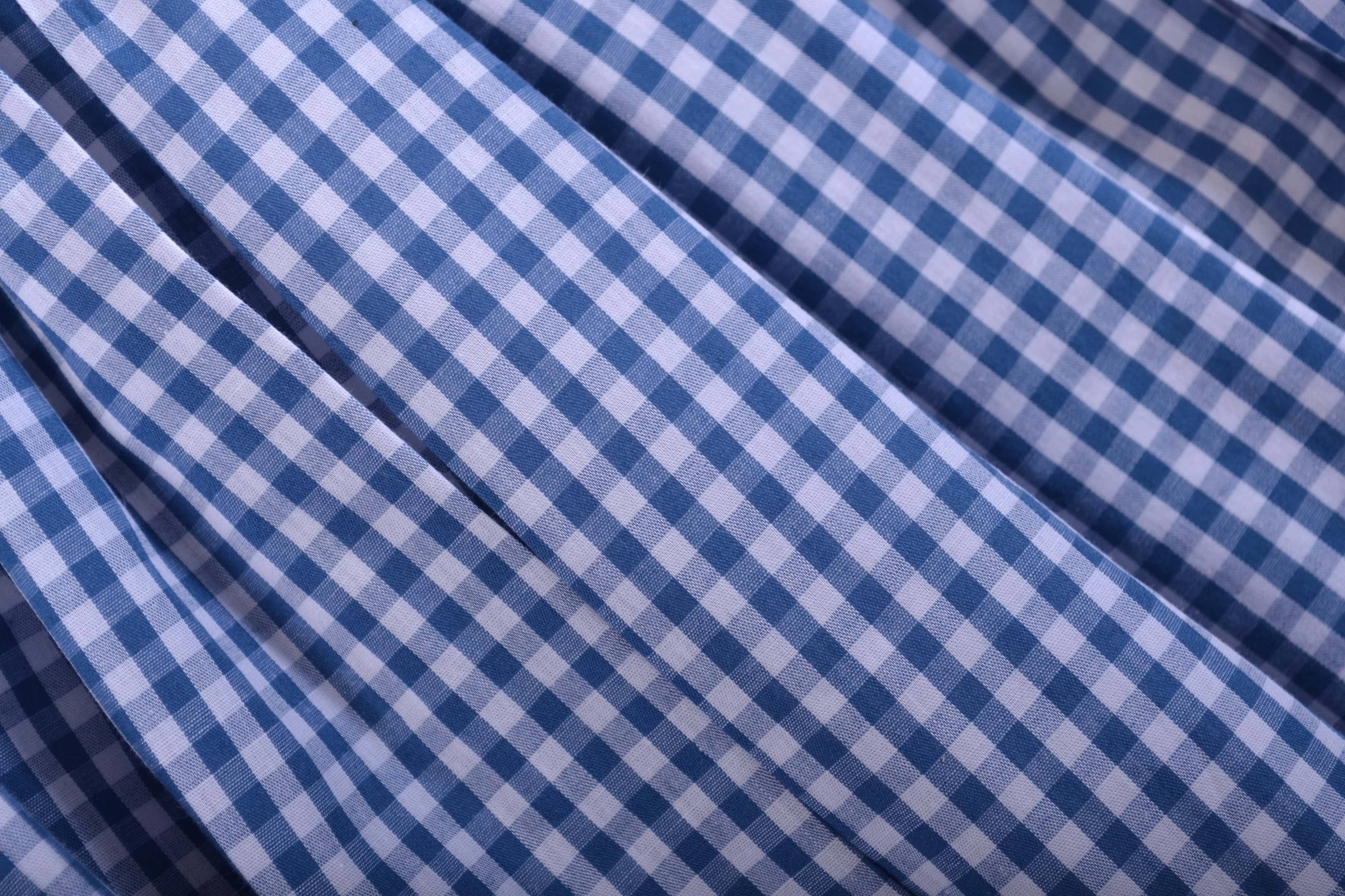 - Denim blue gingham 100% cotton, classic and timeless