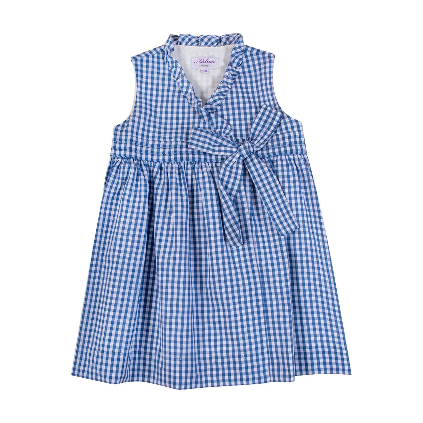 Masha, our wrap dress in denim blue gingham from our "Picnic on the Grass" collection.