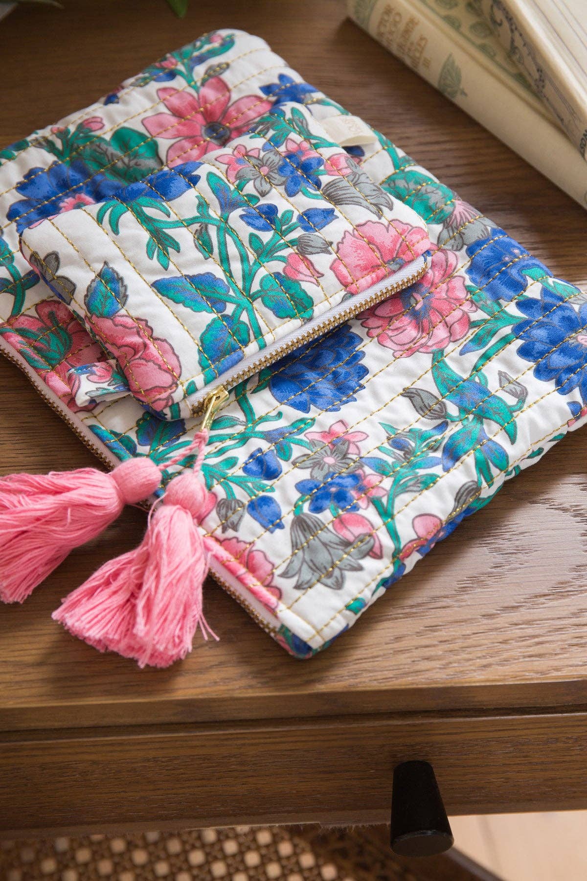 * Quilted pouch.