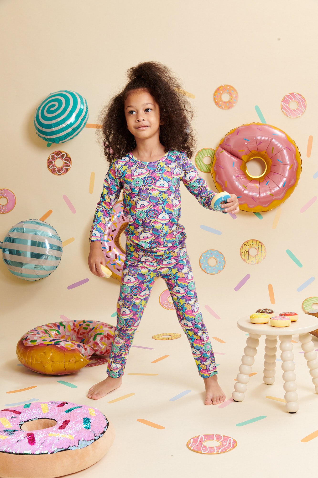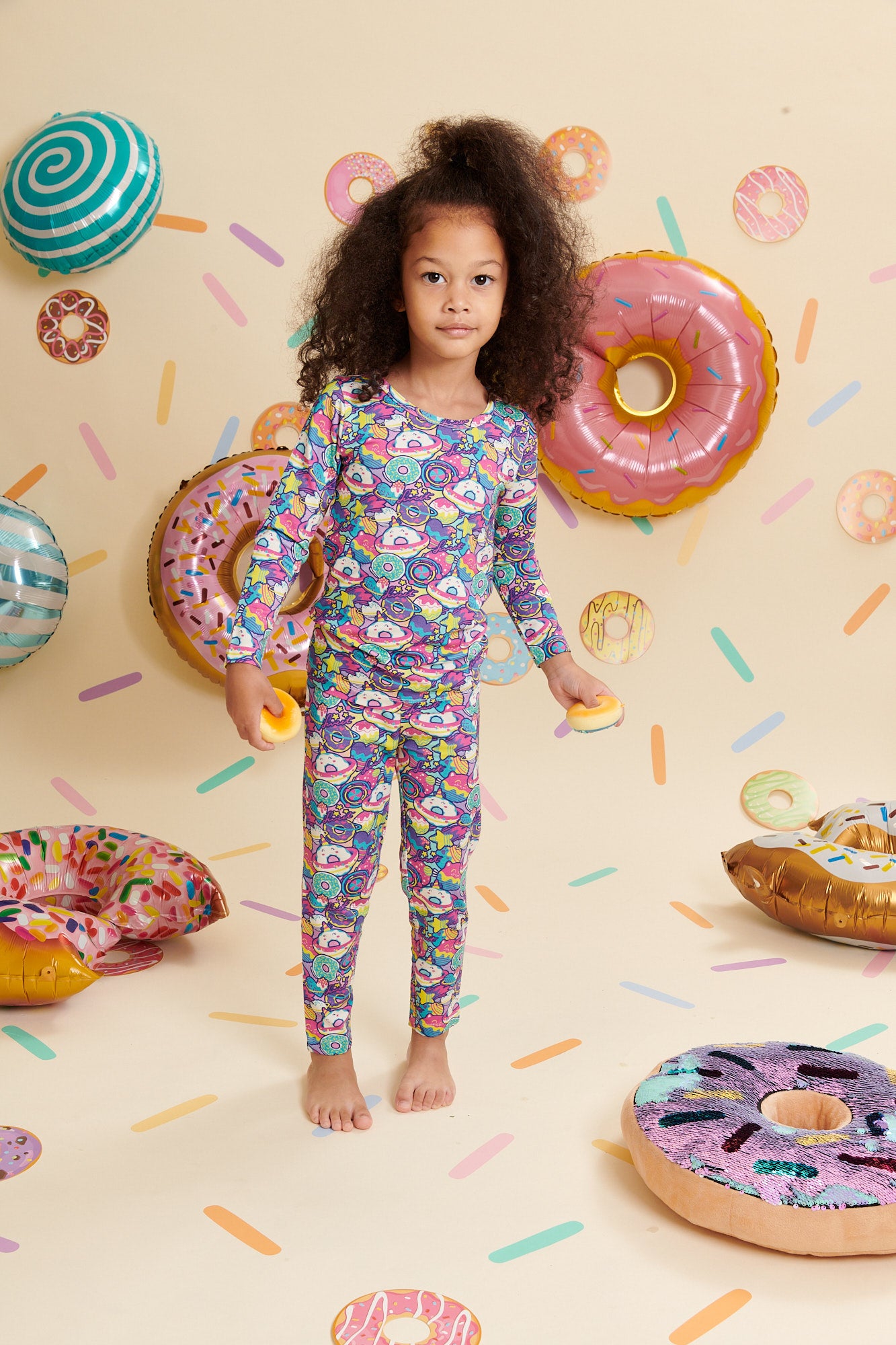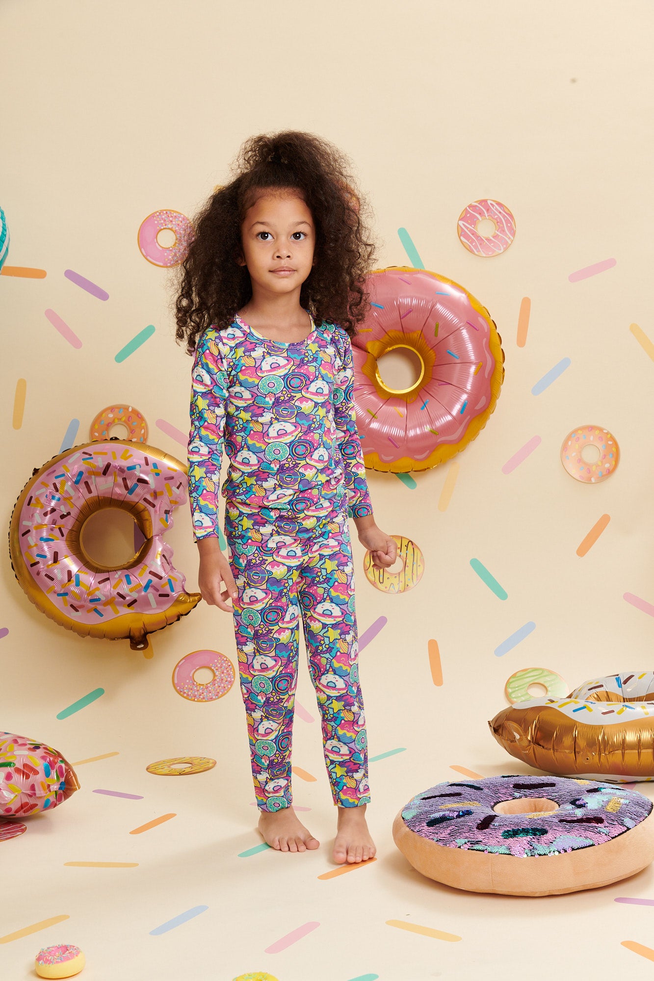 Blast off into bedtime with our Donut Space Out Classic Pajama set made of bamboo! Featuring a bright, playful print of colorful donuts floating in a galaxy of stars, this two-piece set is made from ultra-soft, breathable Ānanda Bambu fabric for out-of-this-world comfort. Perfect for dreamers and donut lovers alike!