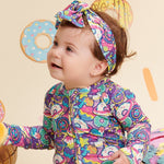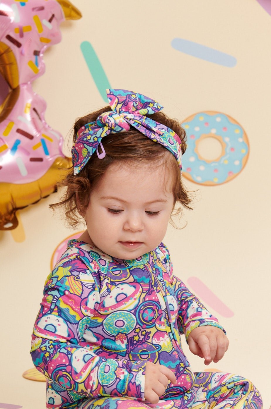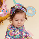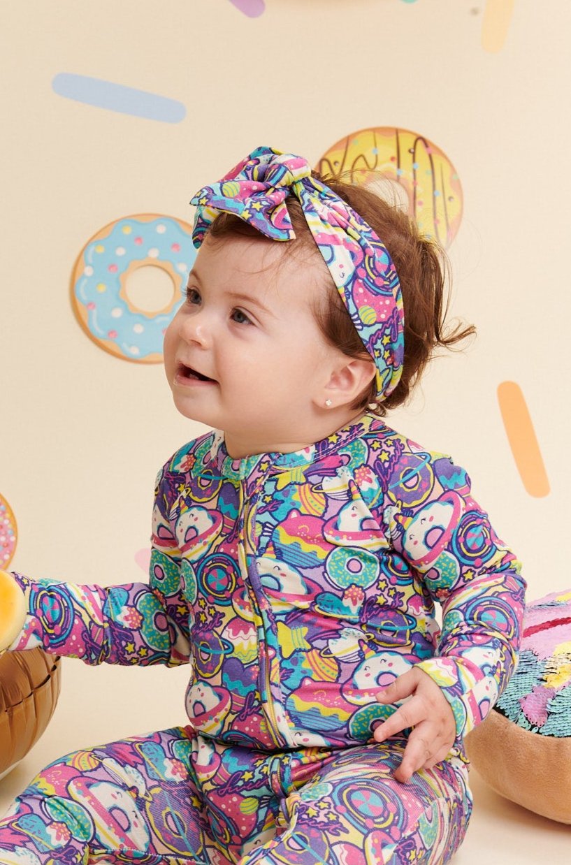 Add a sweet touch to your little one's outfit with the Donut Space Out Headband made of bamboo! Bursting with bright, colorful donuts and cosmic swirls, this accessory is made with Ānanda Bambu for a gentle and stylish fit. Perfect for playdates or picture days!