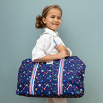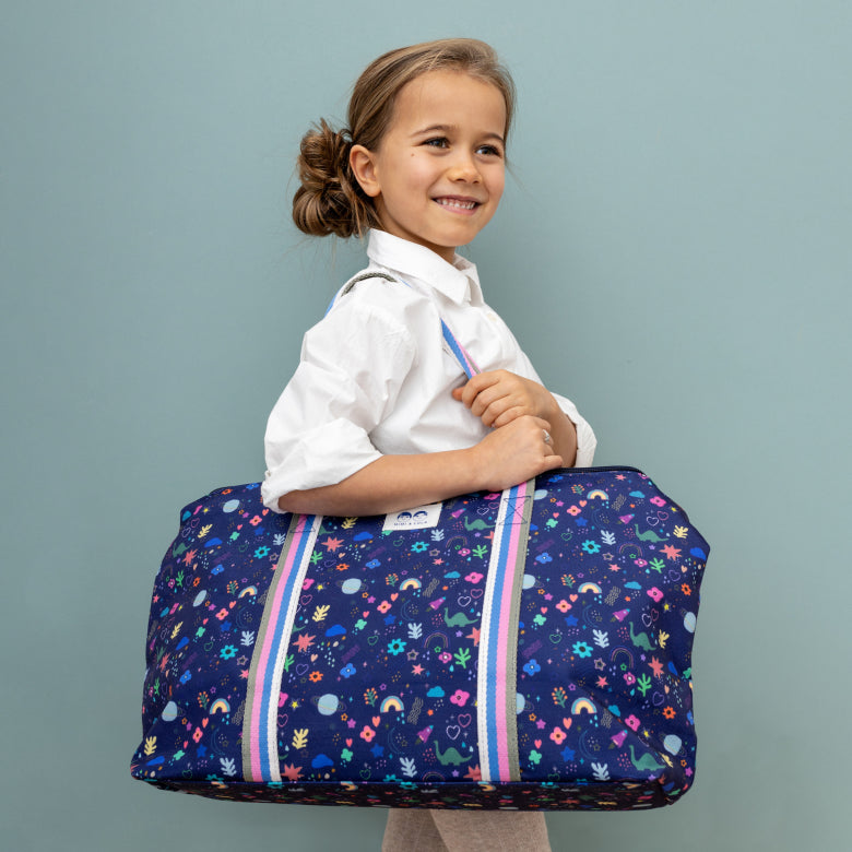 "The perfect sleepover bag!" A great, roomy holdall in our new super cute doodle printed fabric. Just perfect for a mini adventure, camping trip or a sleepover! Match with our ‘Doodle Wash bag' for the perfect overnight duo!