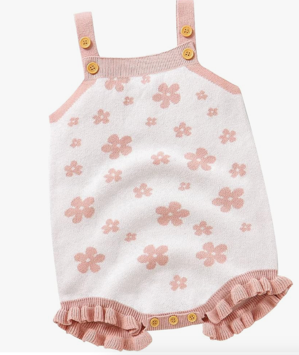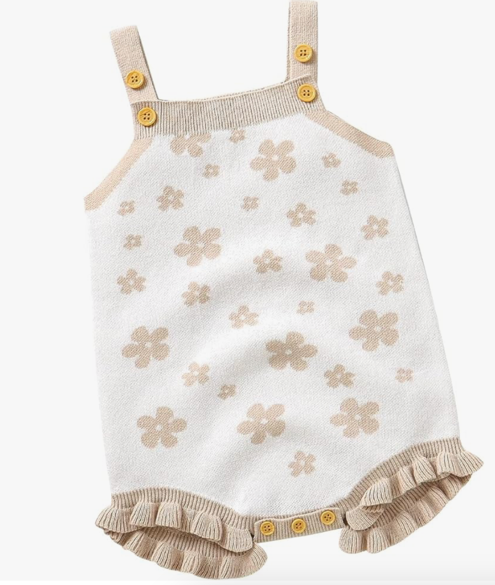 Flower Knit Ruffle Romper