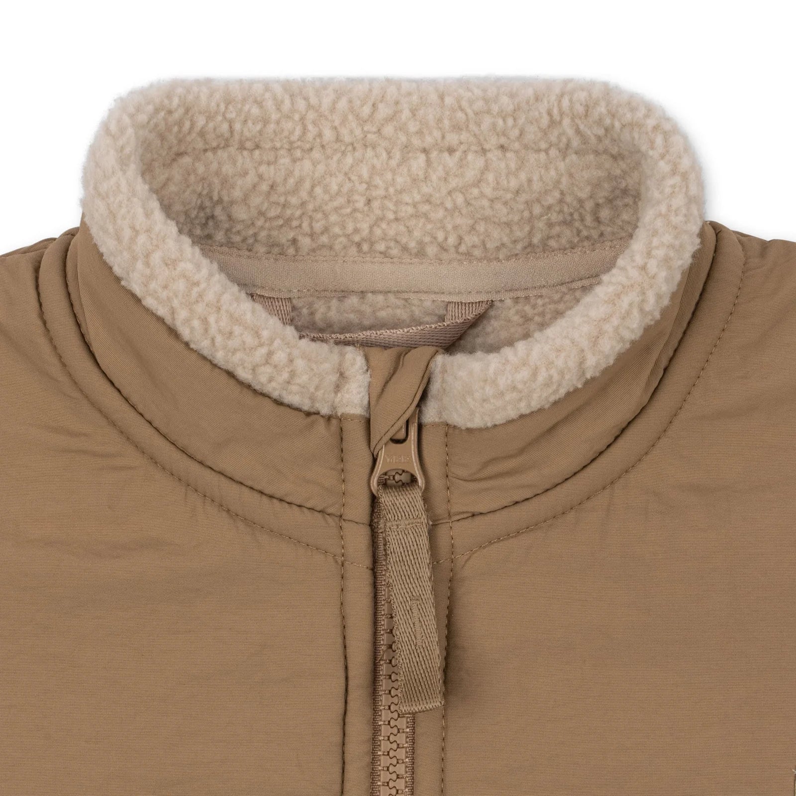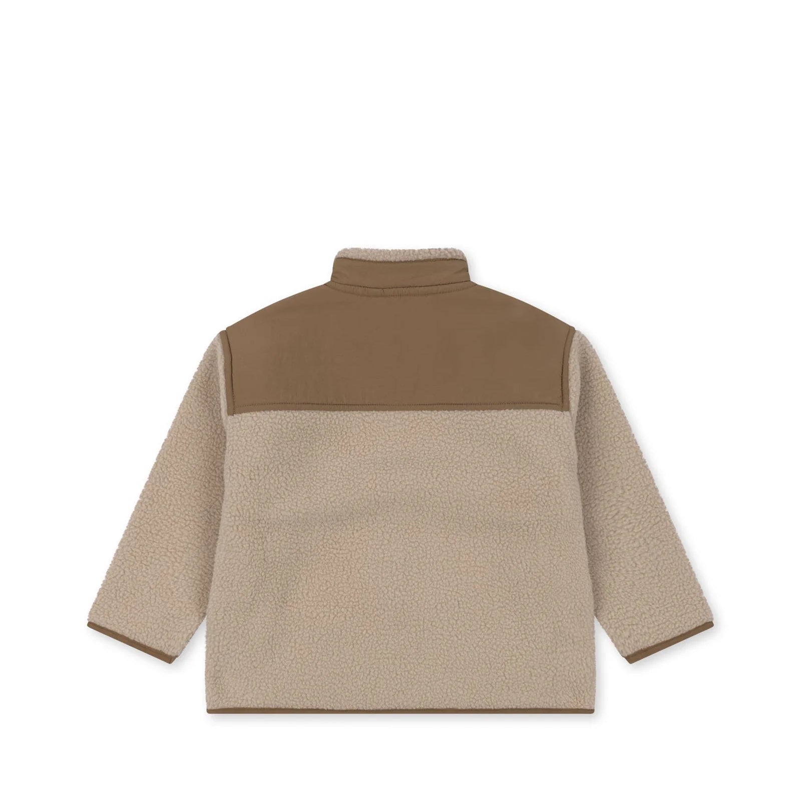 Jacket in a soft fleece quality with a brushed feel. Features a high collar, practical pockets lined with organic cotton, and thumb holes at sleeve ends.