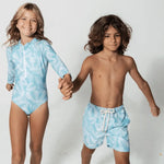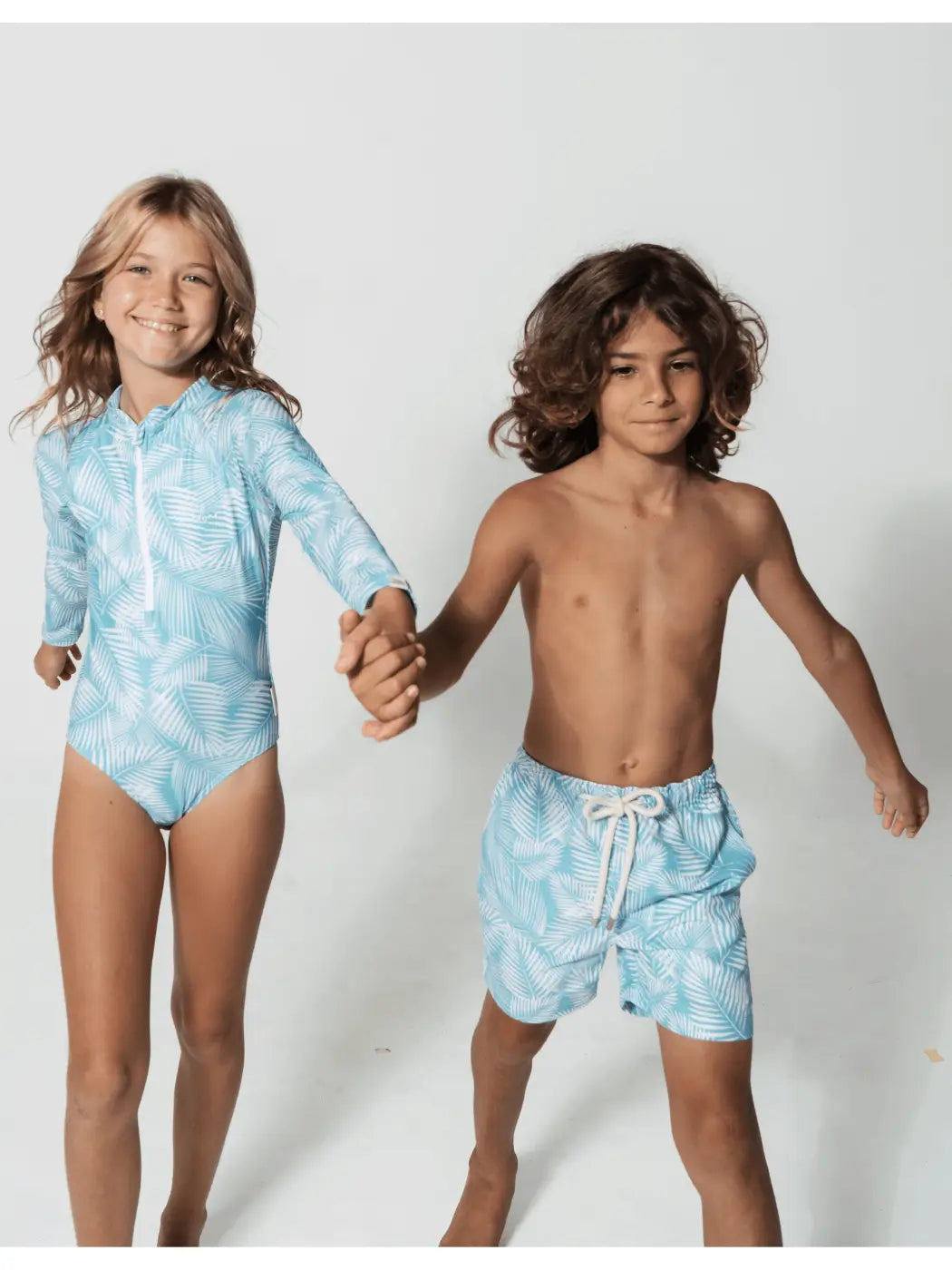 Made from recycled plastic bottles, this will definitely be a favourite for you and your explorer. Our Matching Swim Shorts match with Mum, Dad or the whole family! Ultra soft mesh Metal string end caps to prevent fraying 100% REPREVE® fabric made from recycled plastic bottles UPF50 sun protection Quick dry for use throughout the day Active fit for pioneers on the go