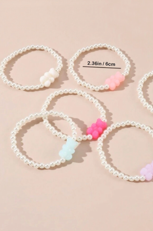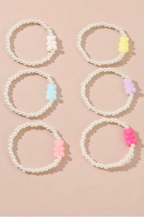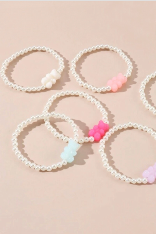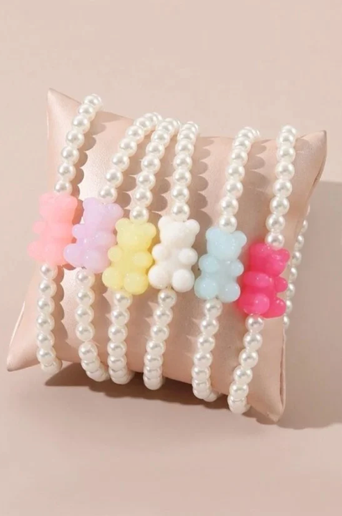 Gummy Bear Pendant Pearl Bracelet Set of 6