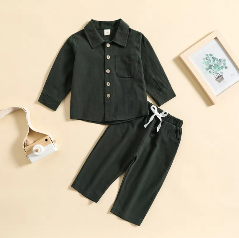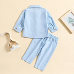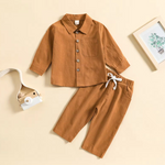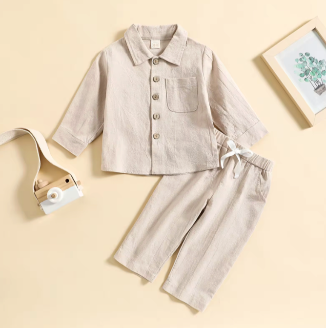Hemp Cotton Long Sleeve Collar Shirt Pajamas with Pants
