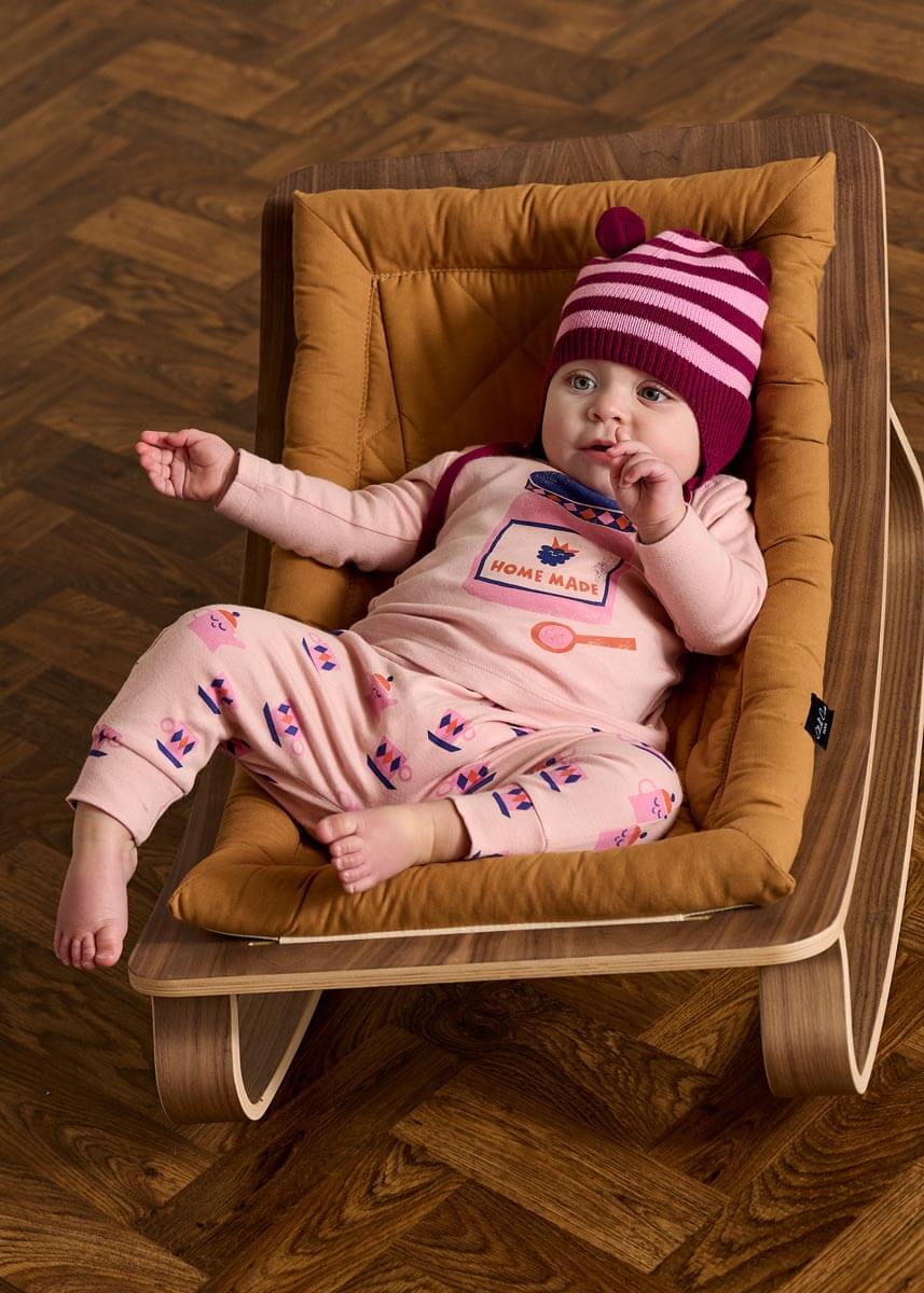 Made from internally brushed super soft GOTS certified organic cotton which is cosy and gentle on sensitive skin. The t-shirt has a relaxed fit and a round neck (including press studs on sizes 0-24m) for easy dressing, whilst the leggings have an elasticated waistband and a hareem style (baby sizes allowing space for diapers). A great quality, sustainable winter baby / kids outfit.