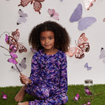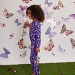 Let bedtime become a flight of dreams with the Iridescent Indigo Classic Pajama Set made of bamboo. Adorned with ethereal purple butterflies shimmering against a velvety indigo backdrop, this luxuriously soft Ānanda Bambu ensemble brings an air of enchantment to every night's rest.