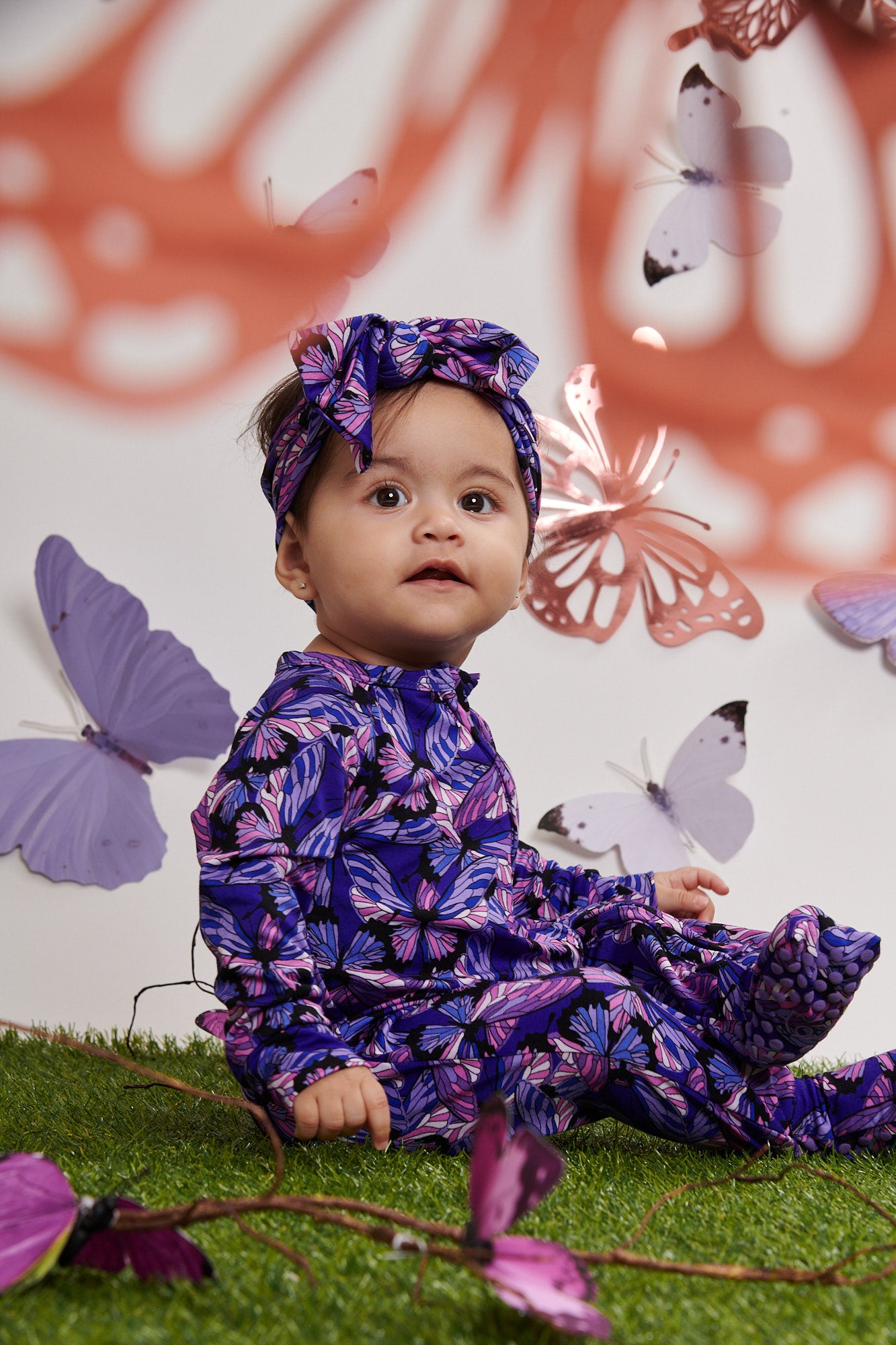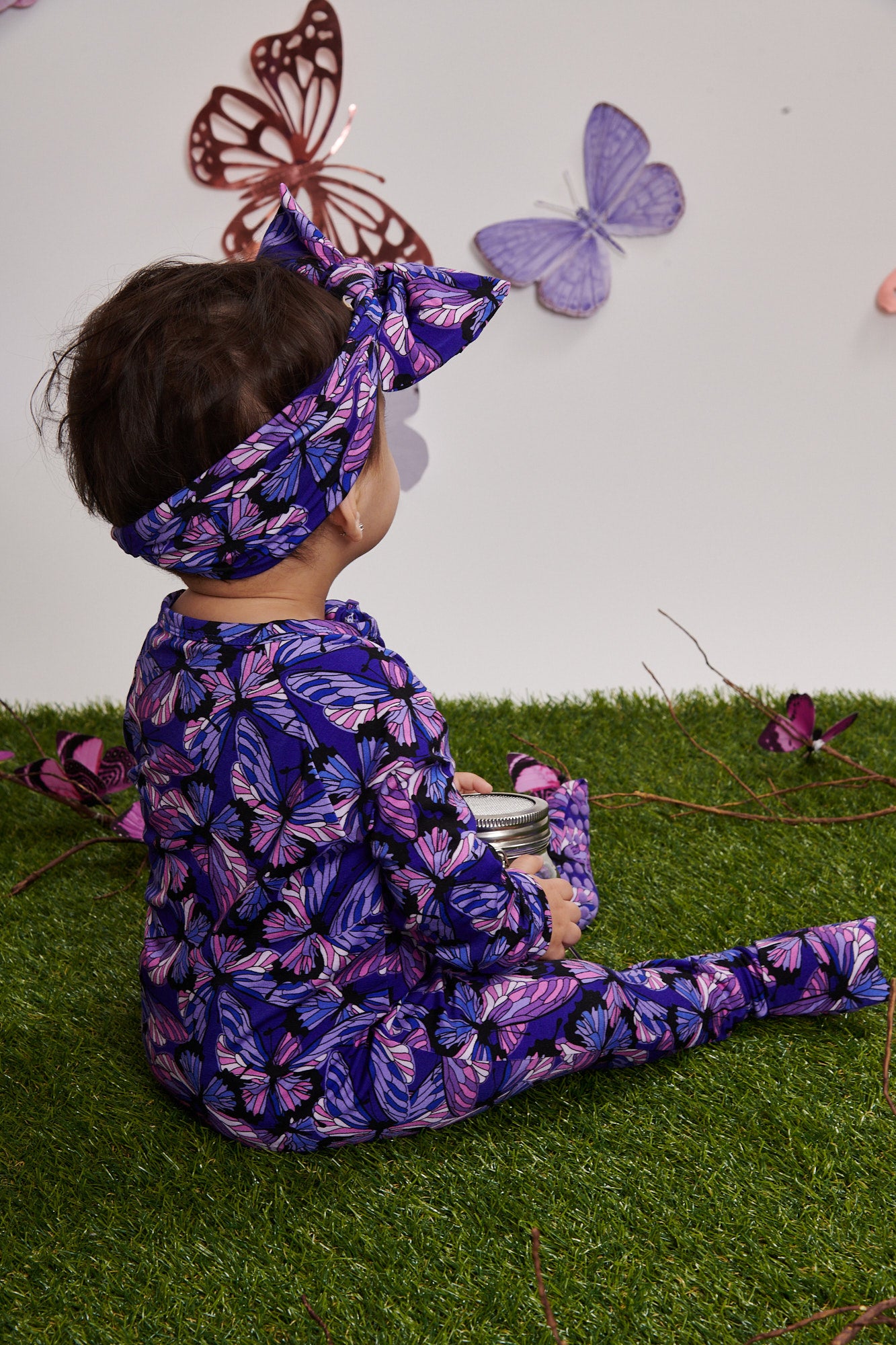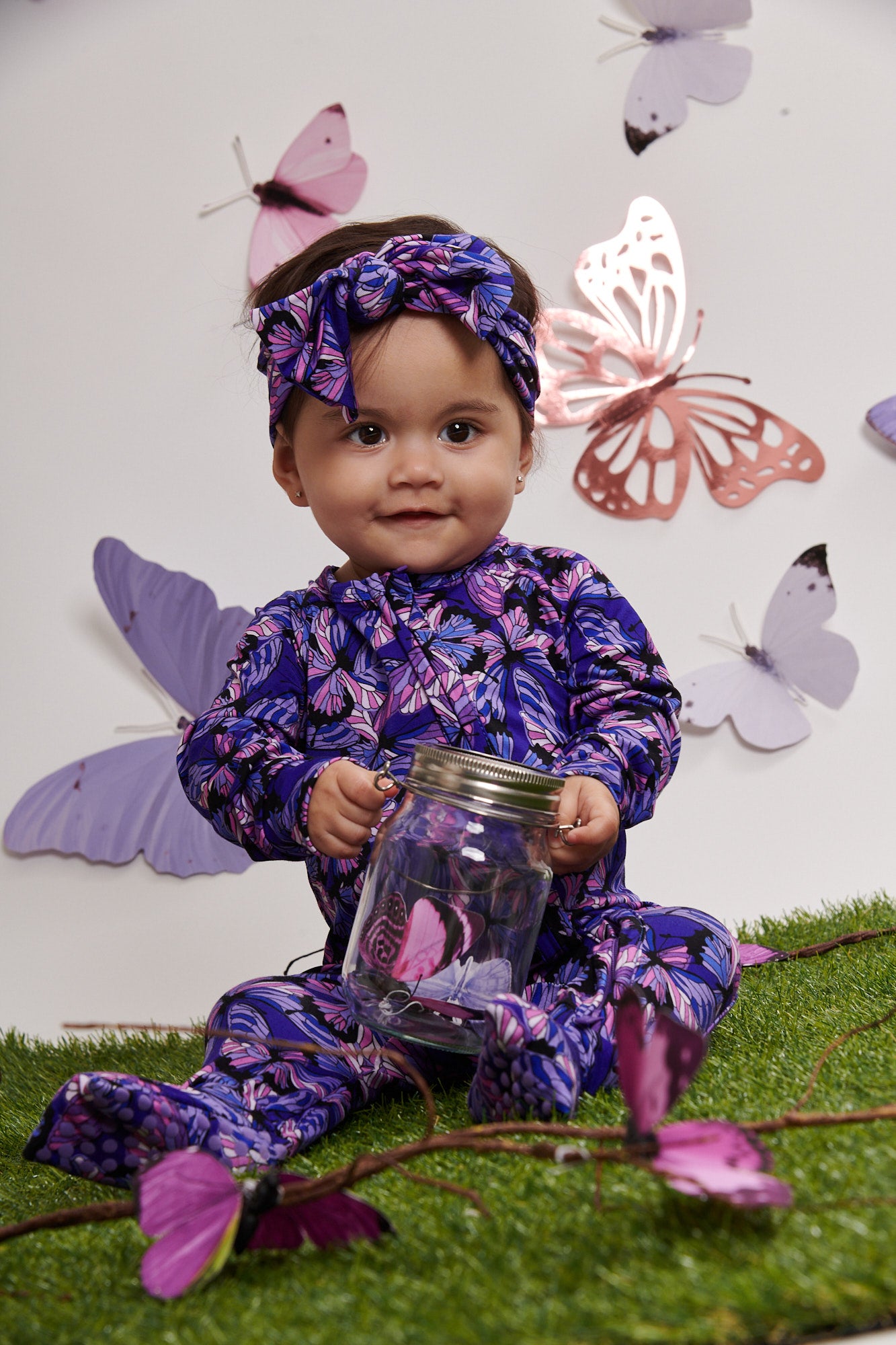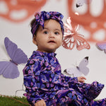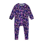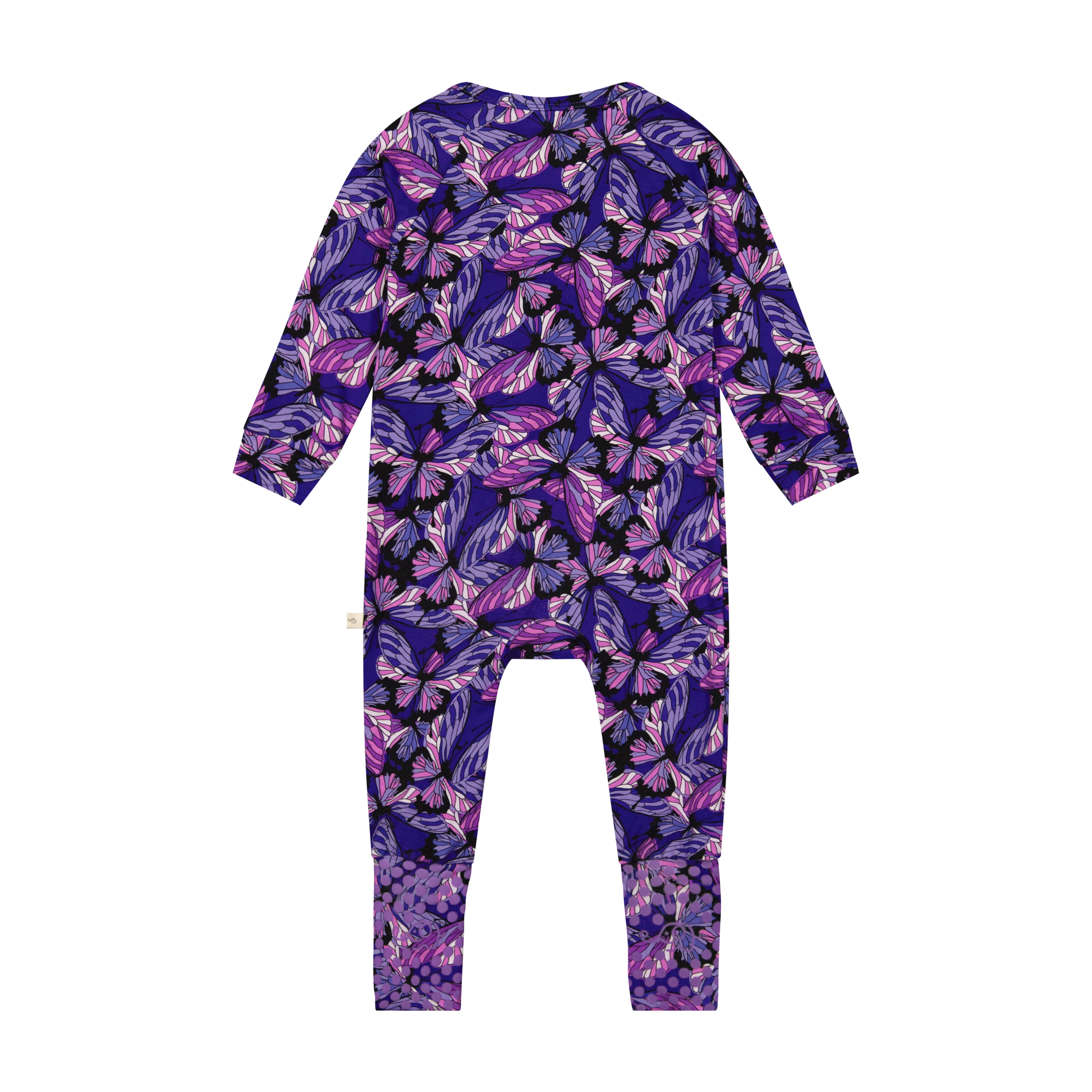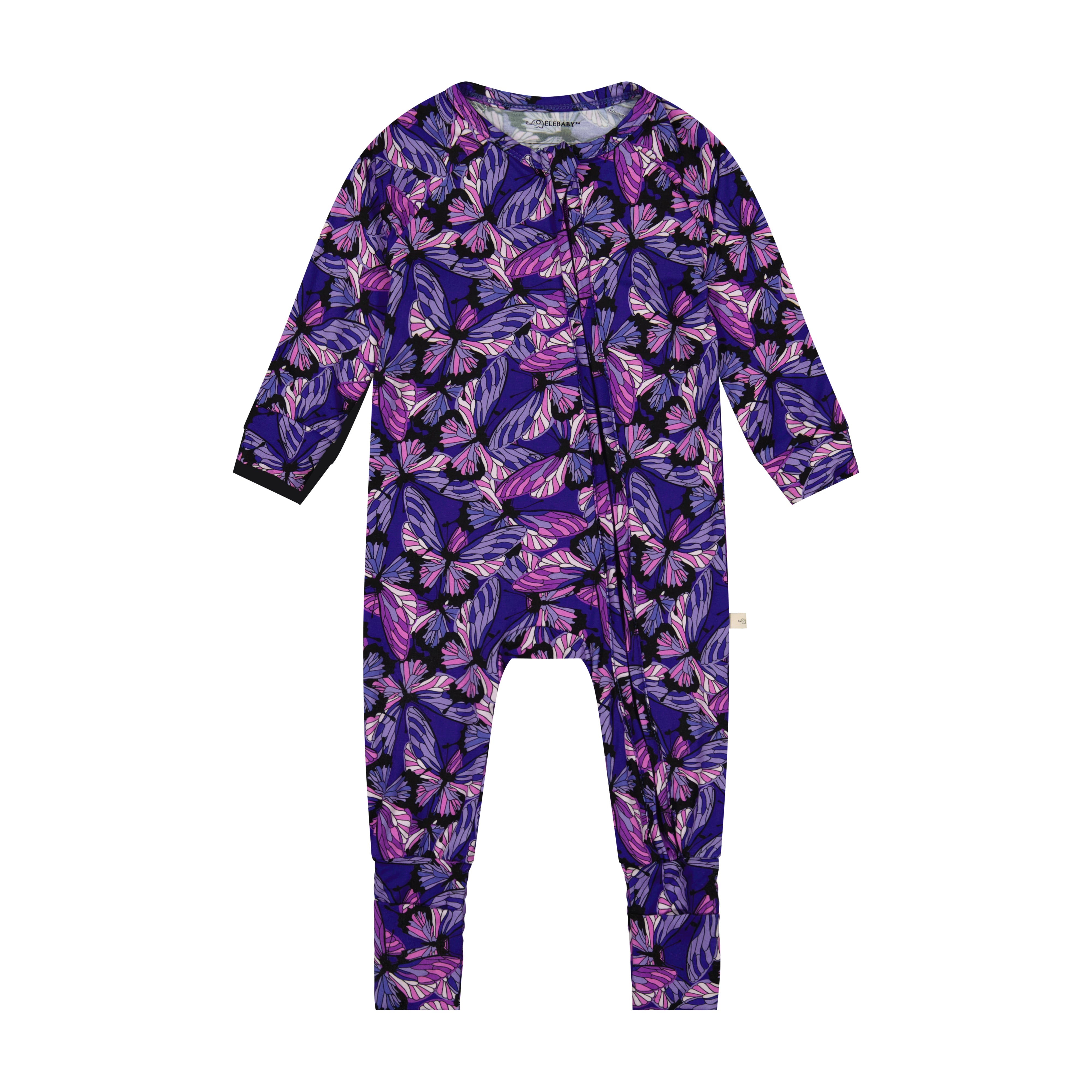 Effortlessly magical, the Iridescent Indigo convertible zip pajama is designed for both charm and practicality made of bamboo. Its radiant purple butterflies glide across a deep indigo canvas, while the feathery softness of Ānanda Bambu cocoons your little one in comfort and ease.