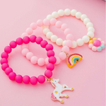Kids Unicorn Rainbow Beaded Bracelet Trio Set