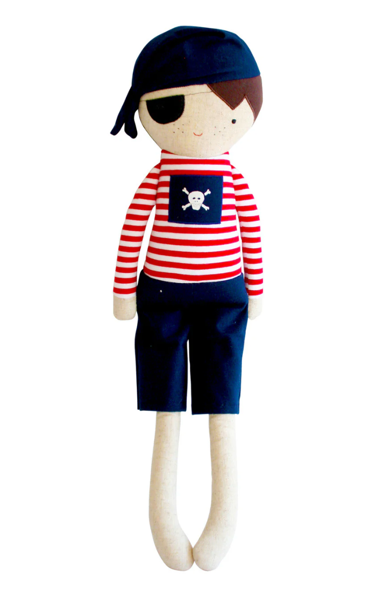 A gorgeous linen pirate boy toy. Made from linen and poly cotton and softly stuffed makes him perfect for cuddling. Suitable from 18 months.