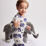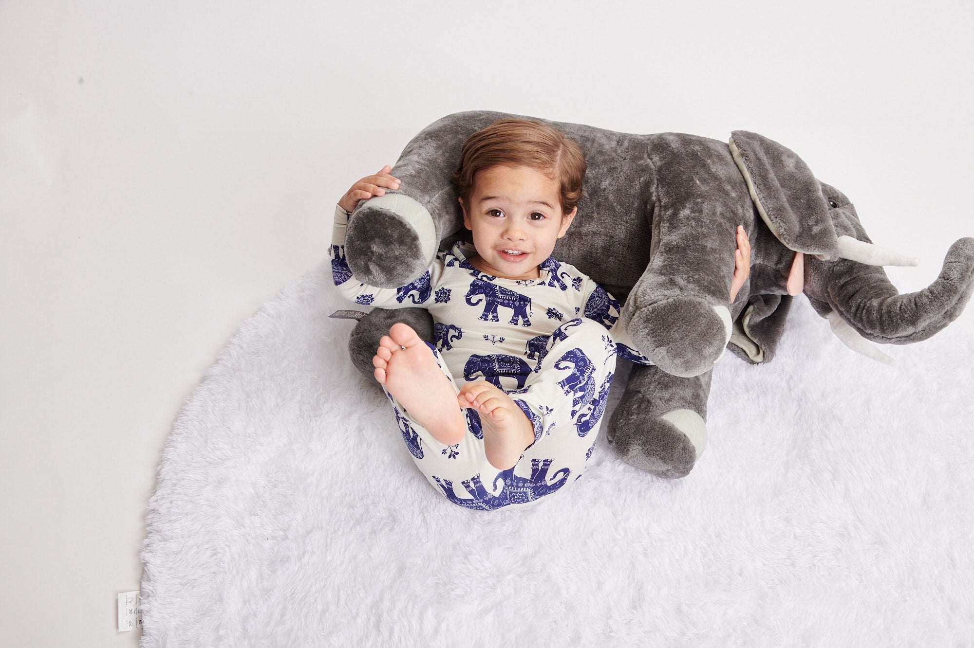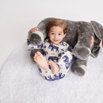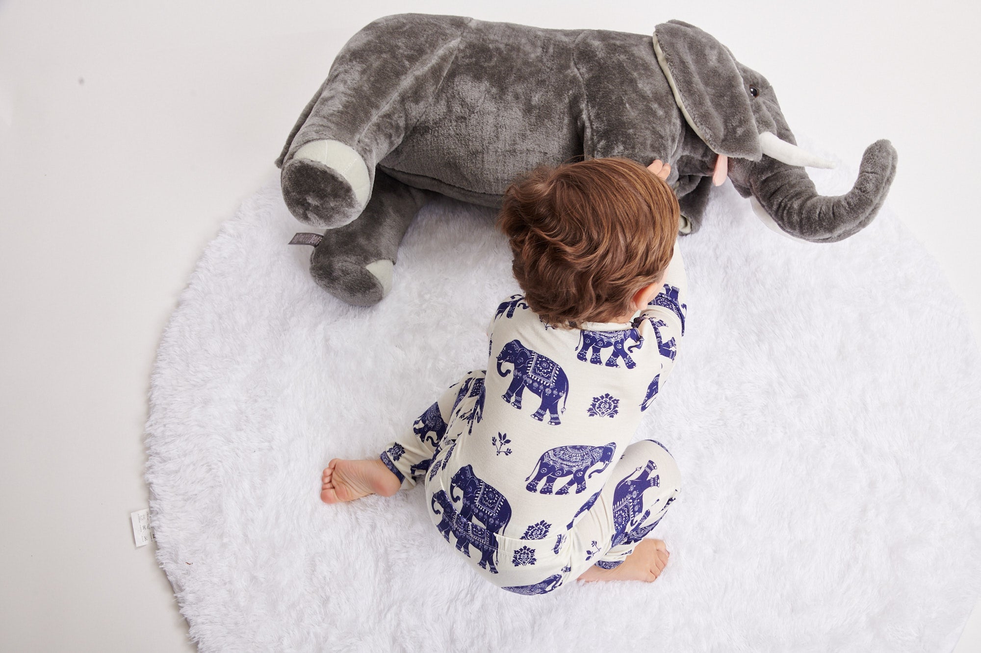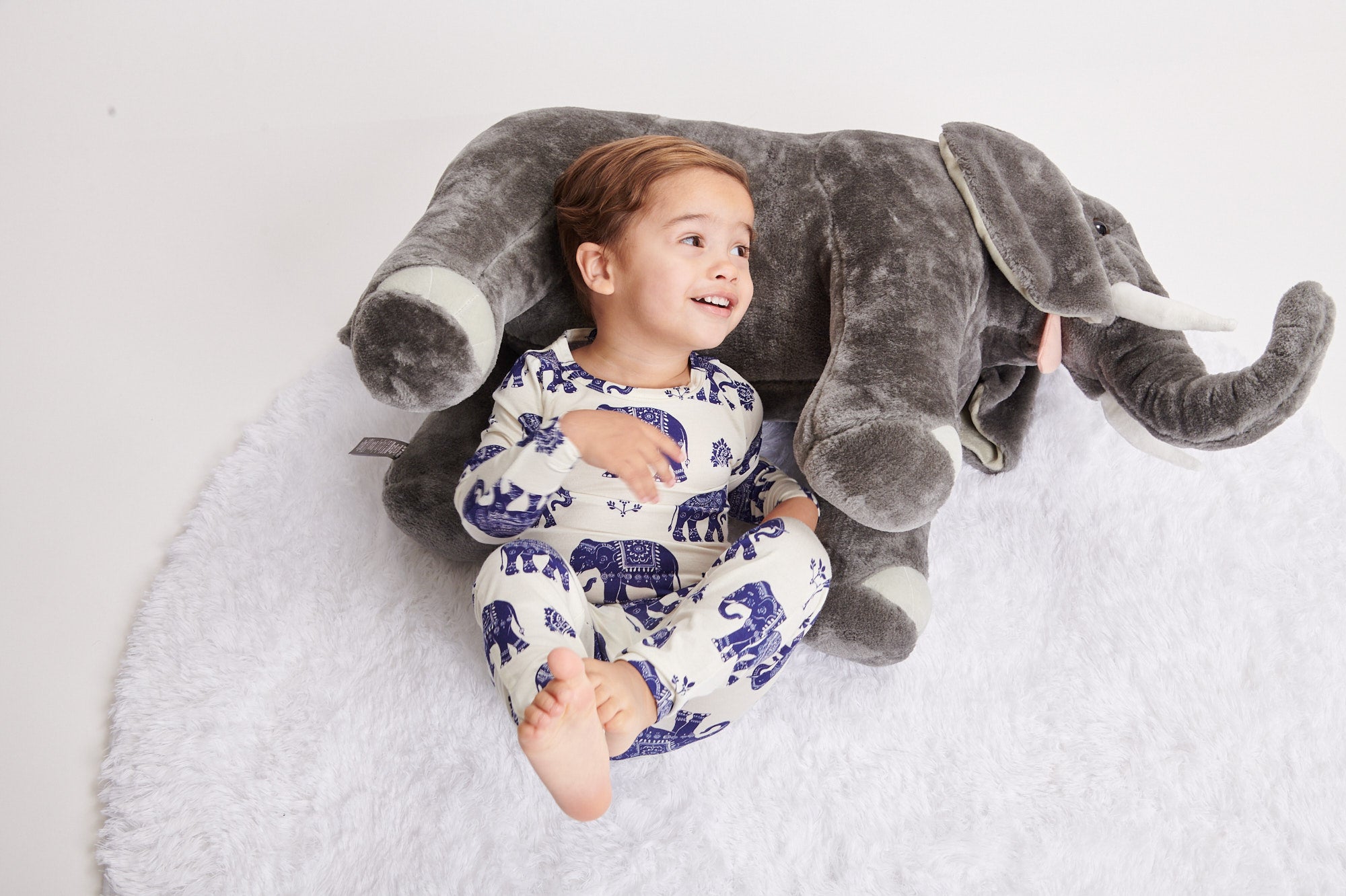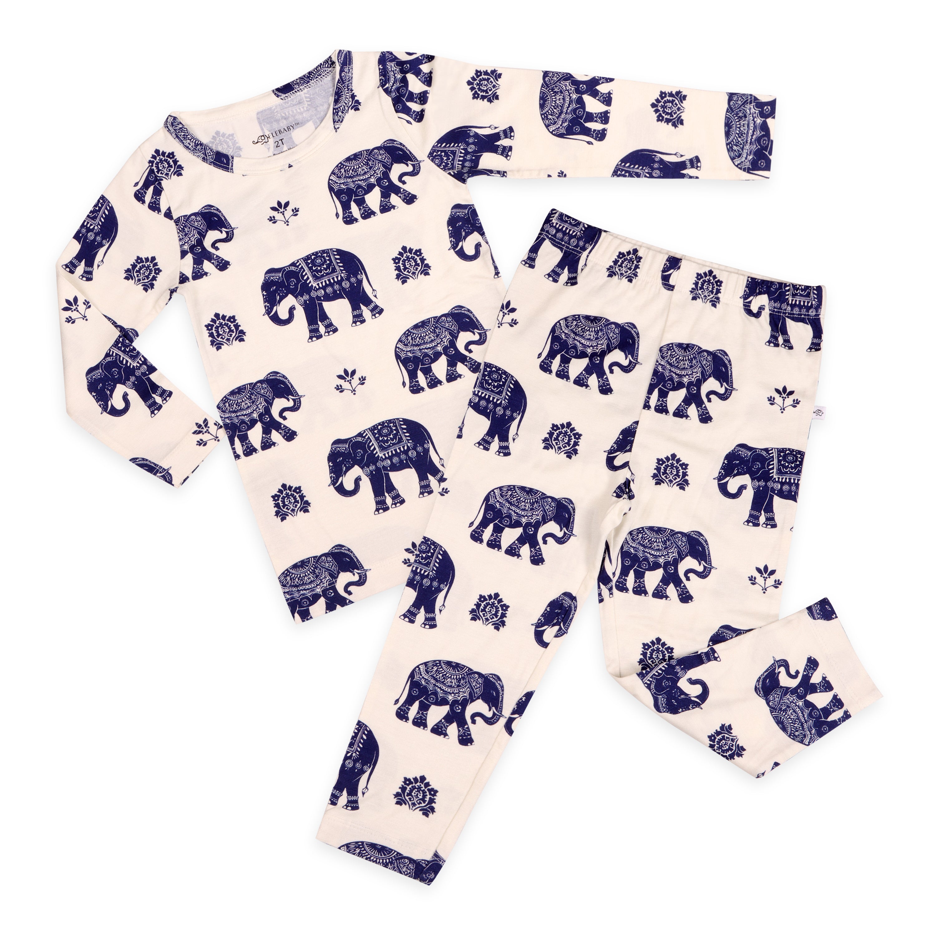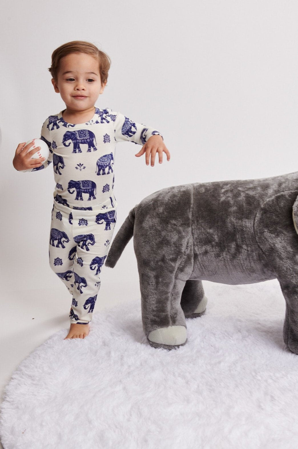 Let your little one drift into dreams of grandeur with our Majestic Maharaja classic pajama set, made from the ultra-soft Ānanda Bambu fabric. The elegant two-piece design showcases navy blue elephants with intricate patterns, offering both comfort and timeless style. The breathable and silky-smooth bamboo fabric is perfect for delicate skin, ensuring a gentle and cozy fit. This classic pajama set combines tradition, charm, and supreme softness, making it a regal addition to your baby’s sleepwear collection.