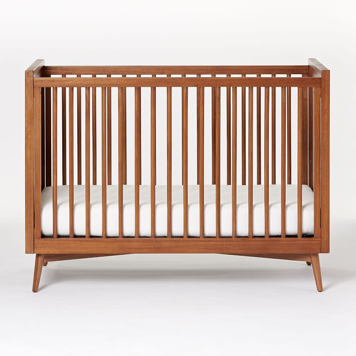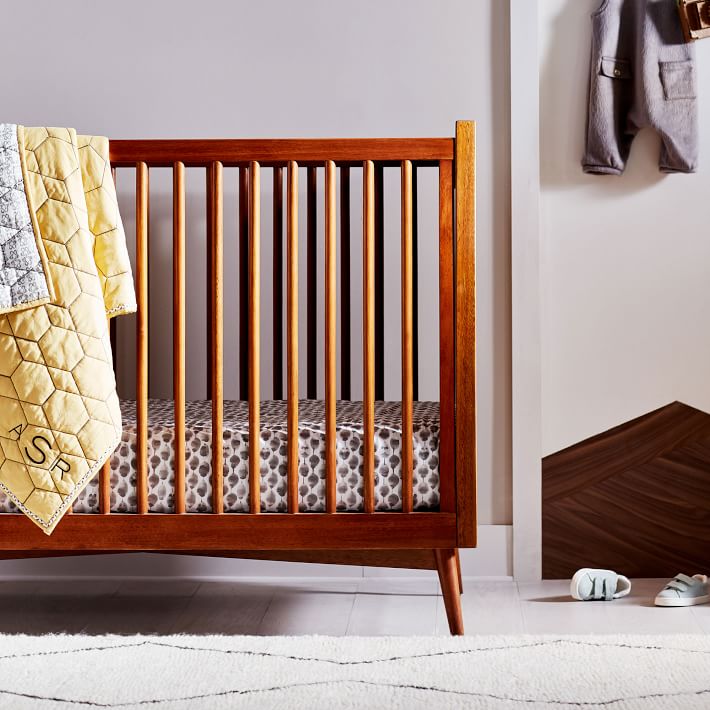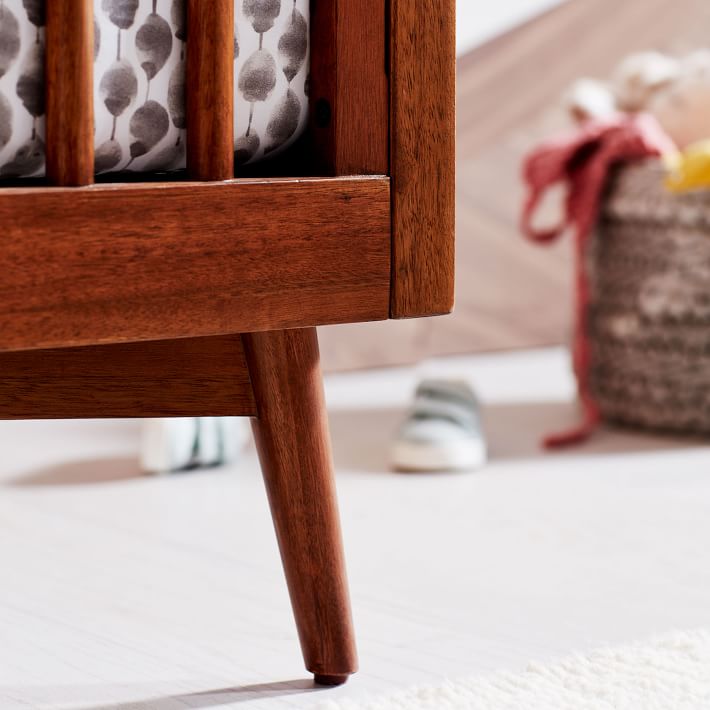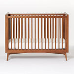 This custom hand made Mid-Century Nursery Bed combines timeless style with durable craftsmanship. Each piece is made by quality teak wood that’s kiln-dried for extra strength, complete with child-safe, water-based finishes. This crib grows with your baby, featuring two platform height options, and can be converted into a cozy toddler bed with the matching conversion kit.