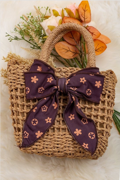 Introducing our Mini Straw Tote with Brown Star-Printed Bow – a charming and stylish accessory that effortlessly blends beachy vibes with a touch of sophistication. This petite straw tote is adorned with a delightful brown star-printed bow, adding a whimsical and eye-catching detail to the natural texture of the straw.