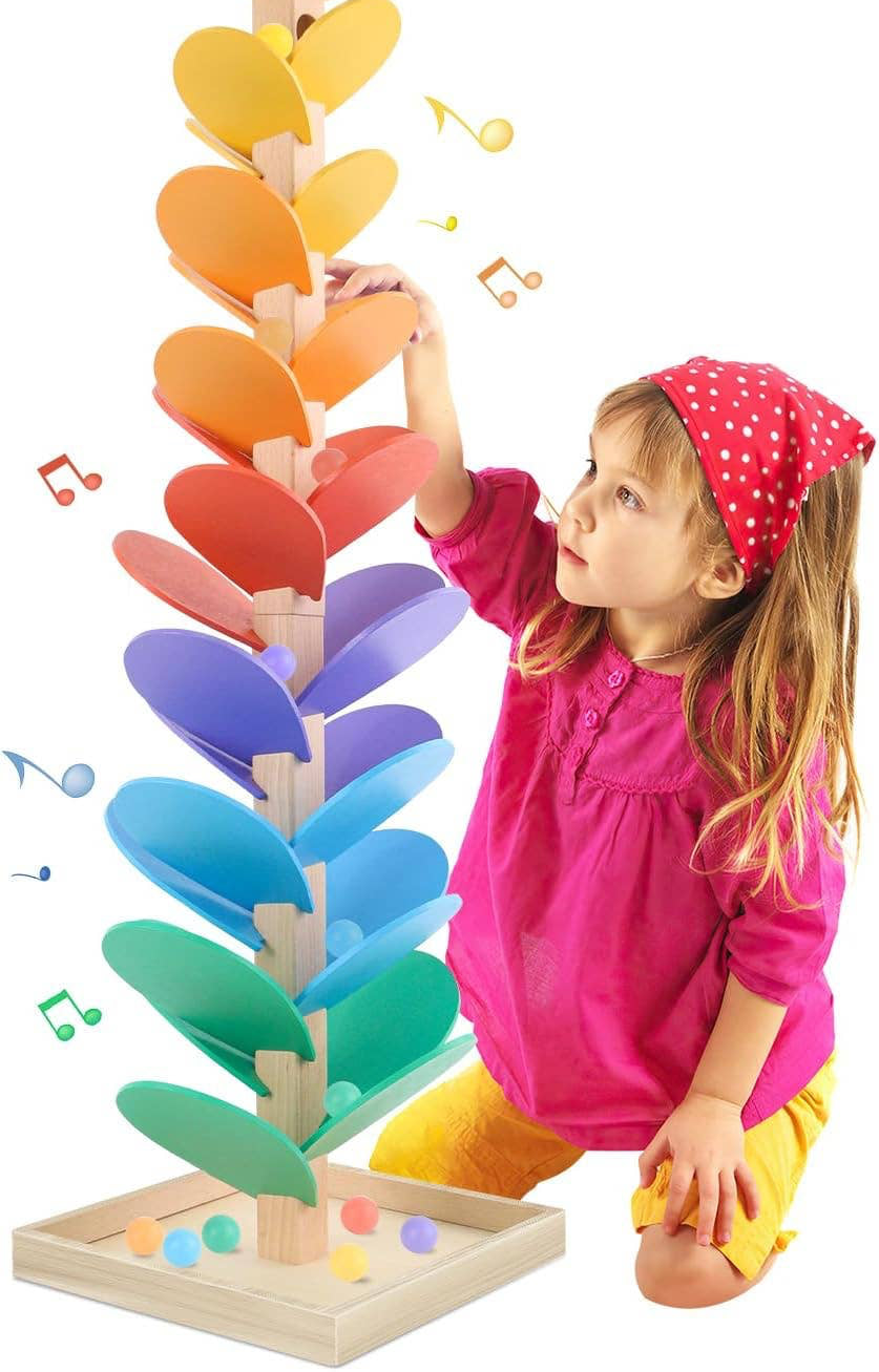 Safe and Sturdy Materials: Our marble run music tree toys are rigorously tested and conform to safety standards. Made of premium wood, it is strong and solid craftsmanship. The multicolored leaves, multicolored balls, yellow round tray are all painted with environmental paint, which is not easy to fall/scratch off, non-toxic, and odorless.