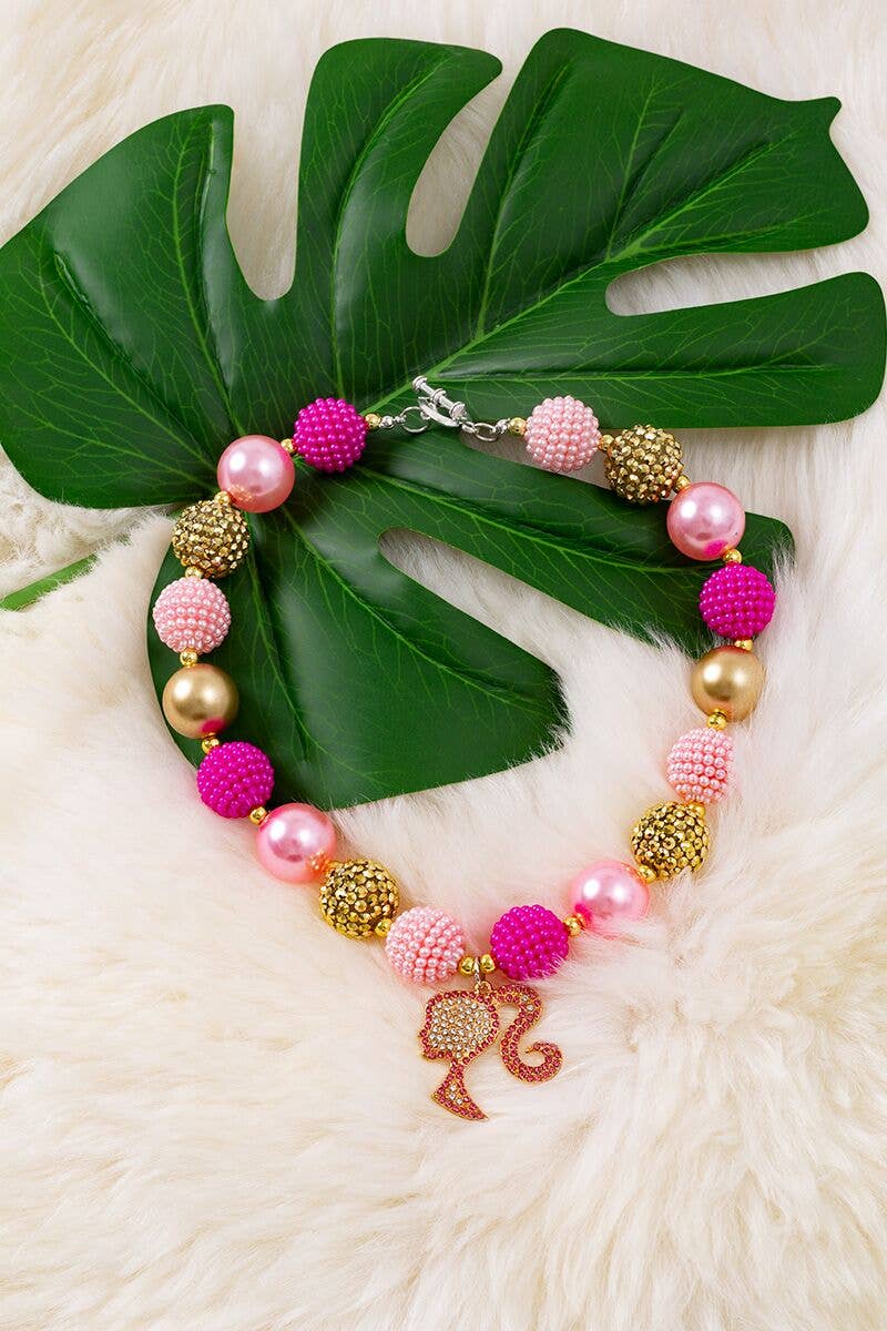 Cute beaded pink and gold necklace for kids with Fancy Lady Charm