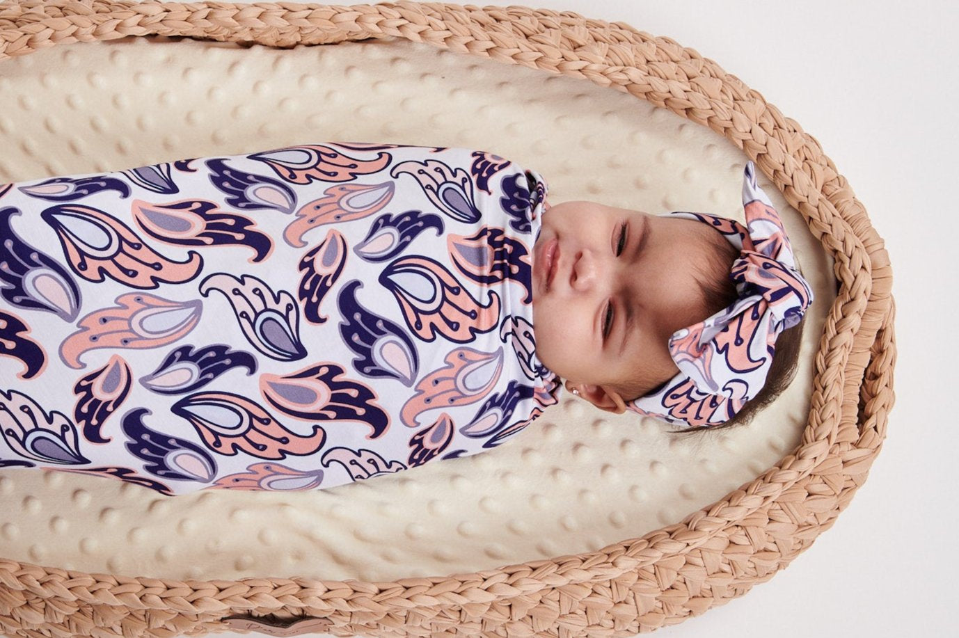 Add a touch of classic charm to any outfit with our Paisley Maze headband. Featuring a chic pink and navy paisley print and crafted from buttery-soft Ānanda Bambu fabric, this headband is as comfortable as it is stylish for your little fashionista!