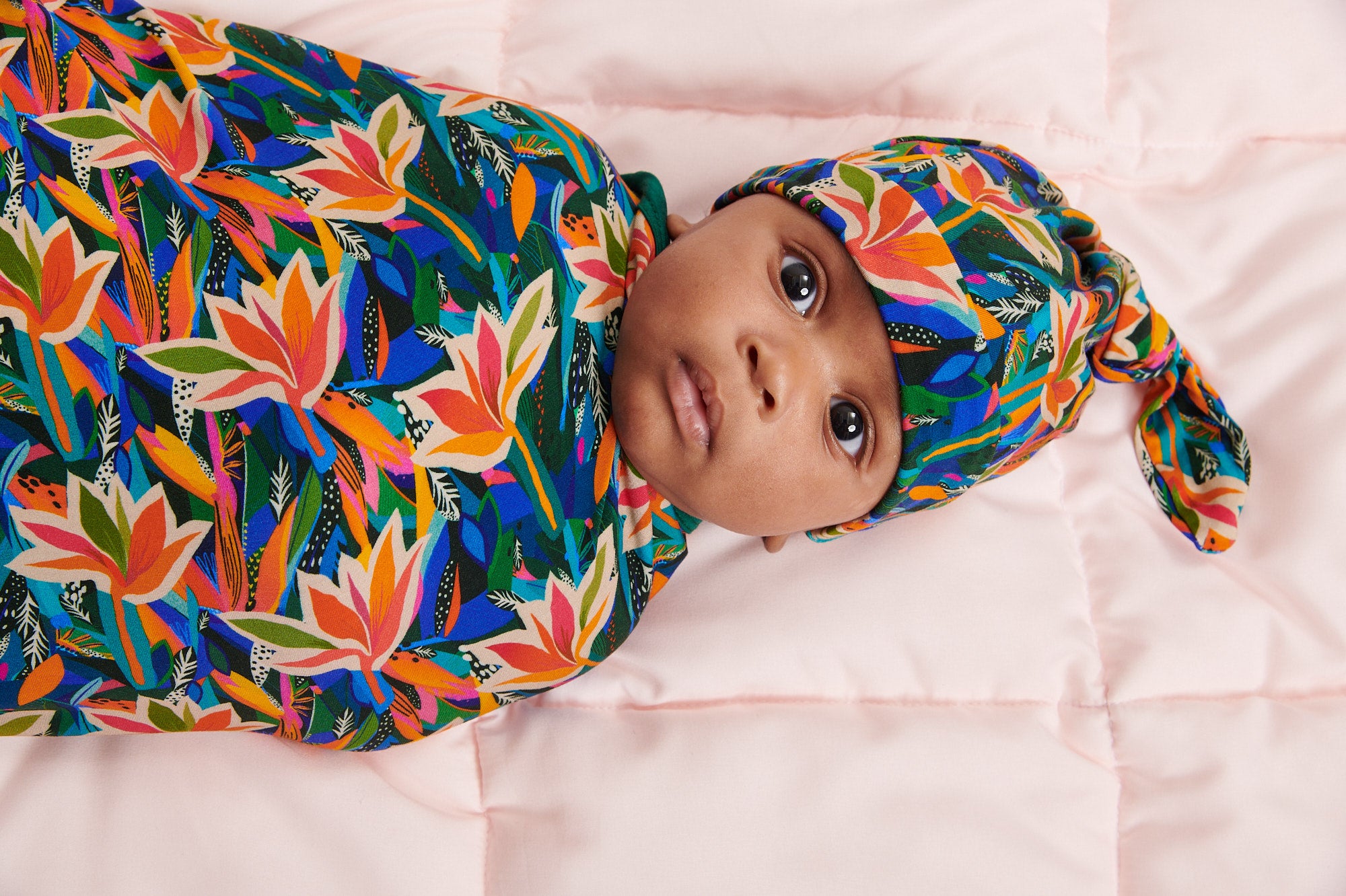 Top off your little one’s look with our Paradise Plumage cap, featuring a vibrant print of birds of paradise foliage. Soft, stretchy bamboo fabric, and perfect for any adventure, it’s a bright and cozy accessory for sunny vibes!