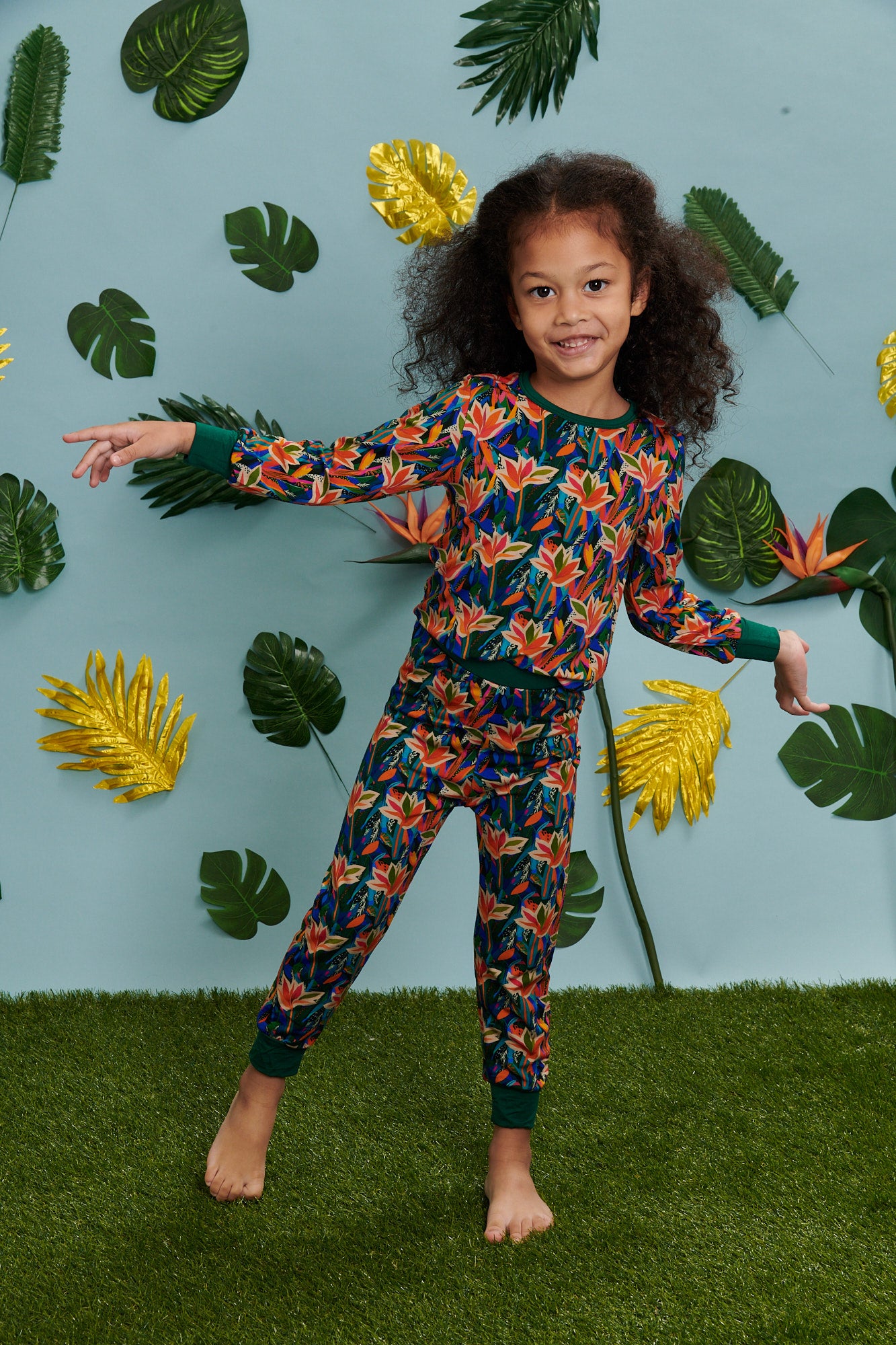 Bring a tropical twist to bedtime with our Paradise Plumage classic pajama set, featuring a vibrant print of birds of paradise foliage. Made from ultra-soft, breathable bamboo fabric, this two-piece set is perfect for cozy nights and playful mornings. Bright, bold, and endlessly comfy—bedtime just got more exciting!