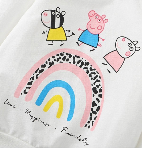 Introducing the Peppa Pig and Friends Long Sleeve Sweatshirt – the ultimate cozy companion for your little one and their pals! This delightful sweatshirt brings together the beloved Peppa Pig characters and their friends in a whimsical design that's sure to spark joy during playtime adventures. The long sleeves offer extra warmth, making it perfect for cooler days and creating lasting memories with friends. Crafted from soft and comfortable cotton fabric, this sweatshirt is a playful and stylish addition to any kids' wardrobe. Let the laughter and fun continue with Peppa and Friends by your side.