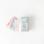 Set of 8 Felt Bandages designed to be used over and over again on stuffed animals and dolls. Packaged in a classic oversized bandage tin perfect for gifting and storage. Each pretend play bandage measures 1.5" x5" in length. Includes 8 bandages in 6 different colorful designs.