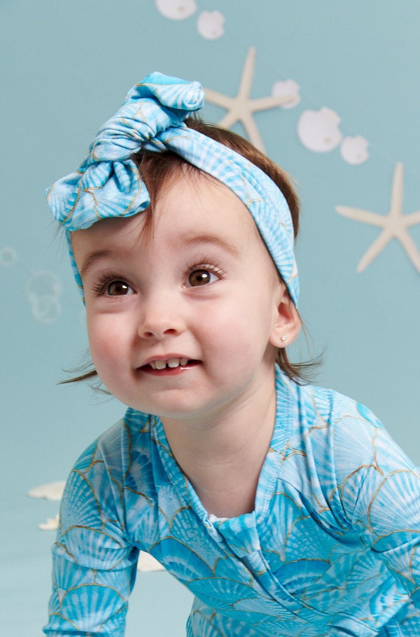Complete your little one's look with the Seashell Serenade Headband, a subtle nod to seaside elegance made of bamboo. Crafted from the silky-smooth Ānanda Bambu fabric, the soft blue seashell print adds a touch of effortless charm to any outfit while remaining gentle on delicate skin.