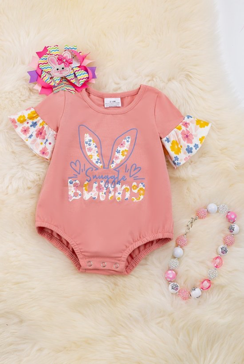 "SNUGGLE BUNNY" Printed Blush Baby Onesie