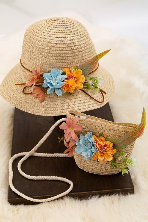 Paired with the hat is an equally charming straw bag, completing the set with a touch of whimsy. The bag is just the right size for your child to carry their essentials, whether it be beach toys, snacks, or tiny treasures they discover during summer escapades.