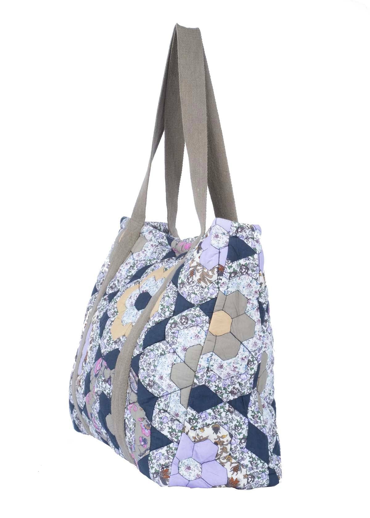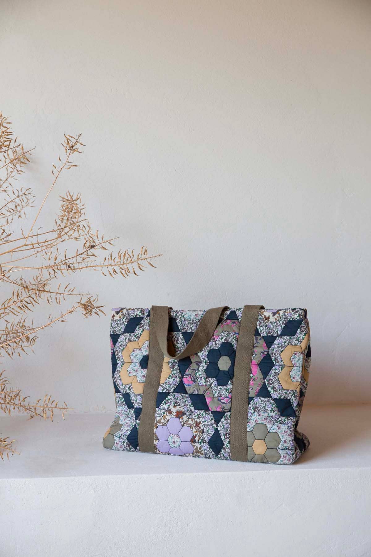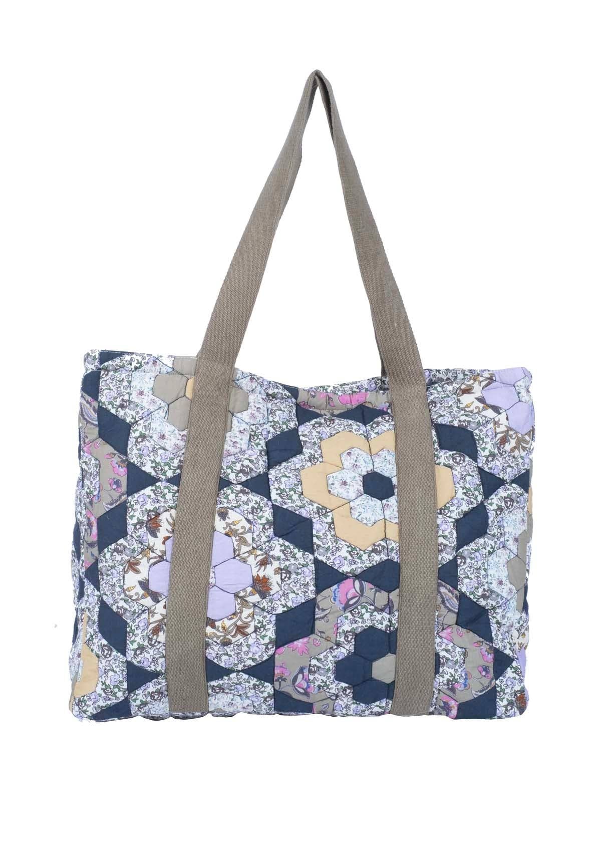 This new patchwork effect tote bag is the season's favorite that will accompany you on all your adventures. The topstitching that creates its quilting is the result of patient work!