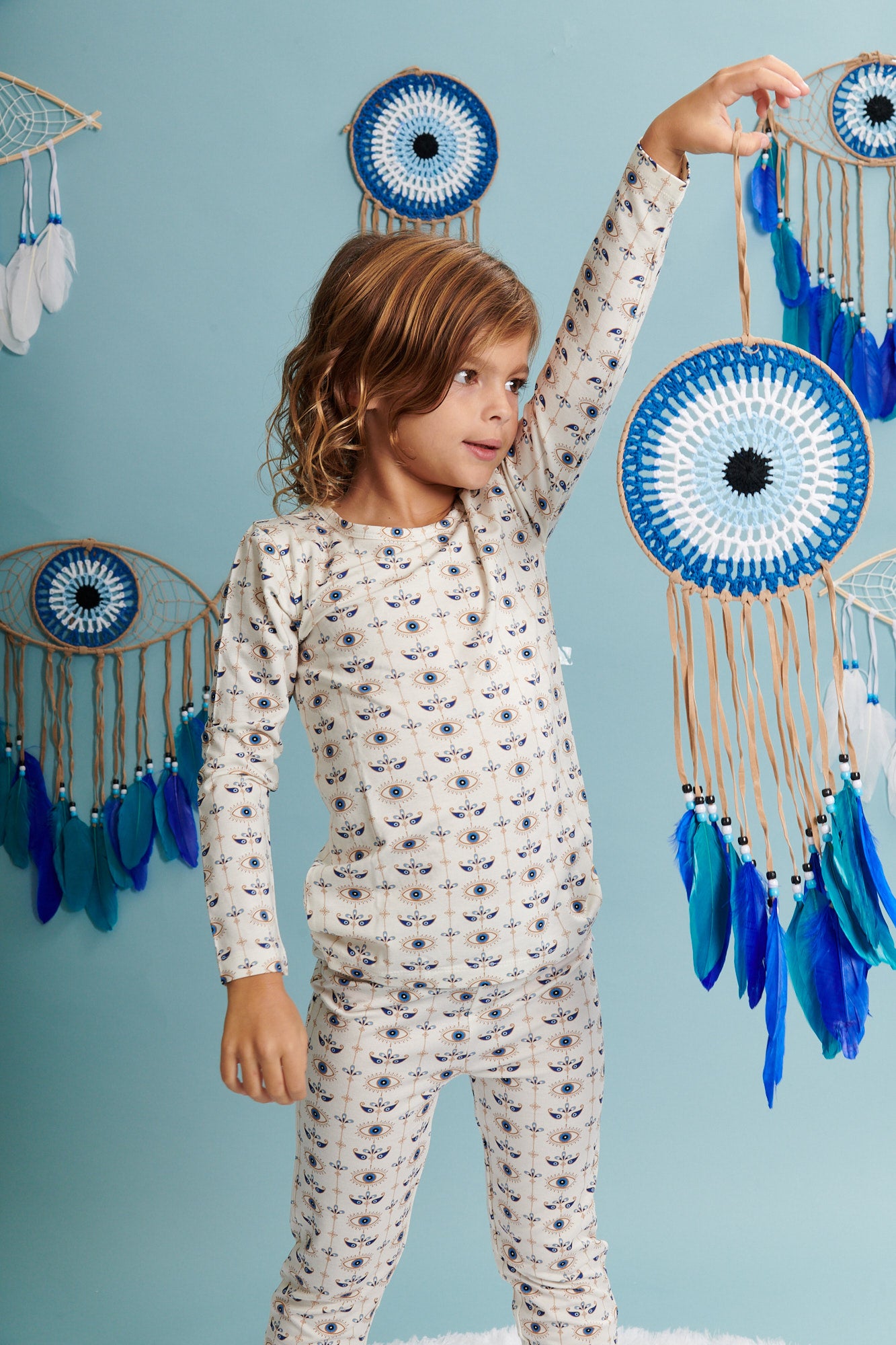 Wrap your child in comfort and charm with our Tiny Talisman classic pajama set, featuring an enchanting print of talisman-inspired motifs. Available in sizes up to 7T, this two-piece set is crafted from our signature Ānanda Bambu fabric, offering luxurious softness, breathability, and a gentle touch for delicate skin of all ages. The timeless design provides freedom of movement, making it perfect for bedtime, lounging, or cozy mornings. With its whimsical style and unmatched bamboo comfort, this pajama set is a delightful choice for kids from babies to big kids.