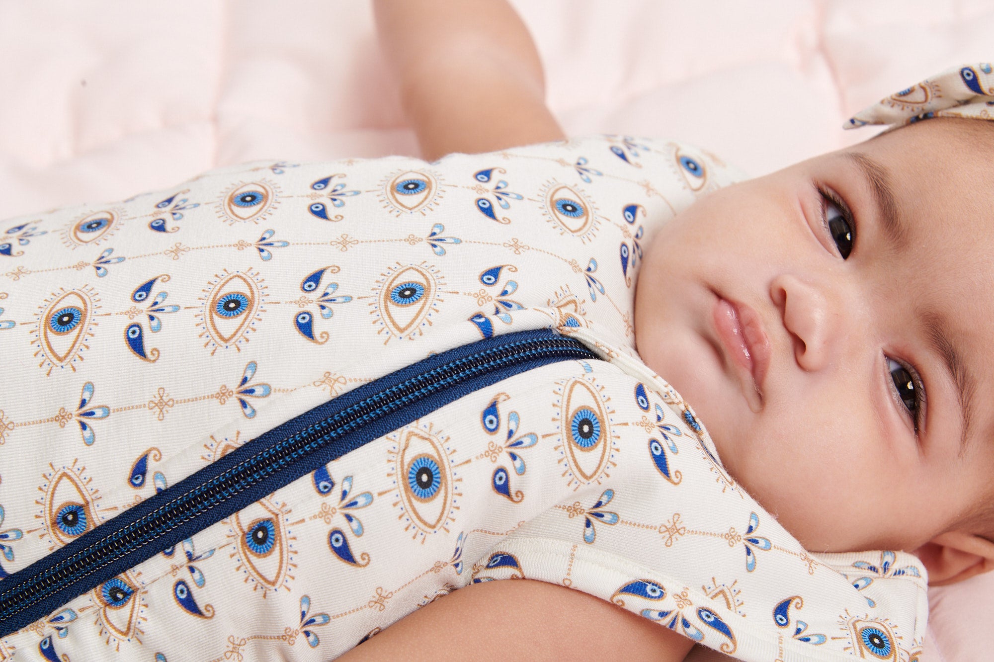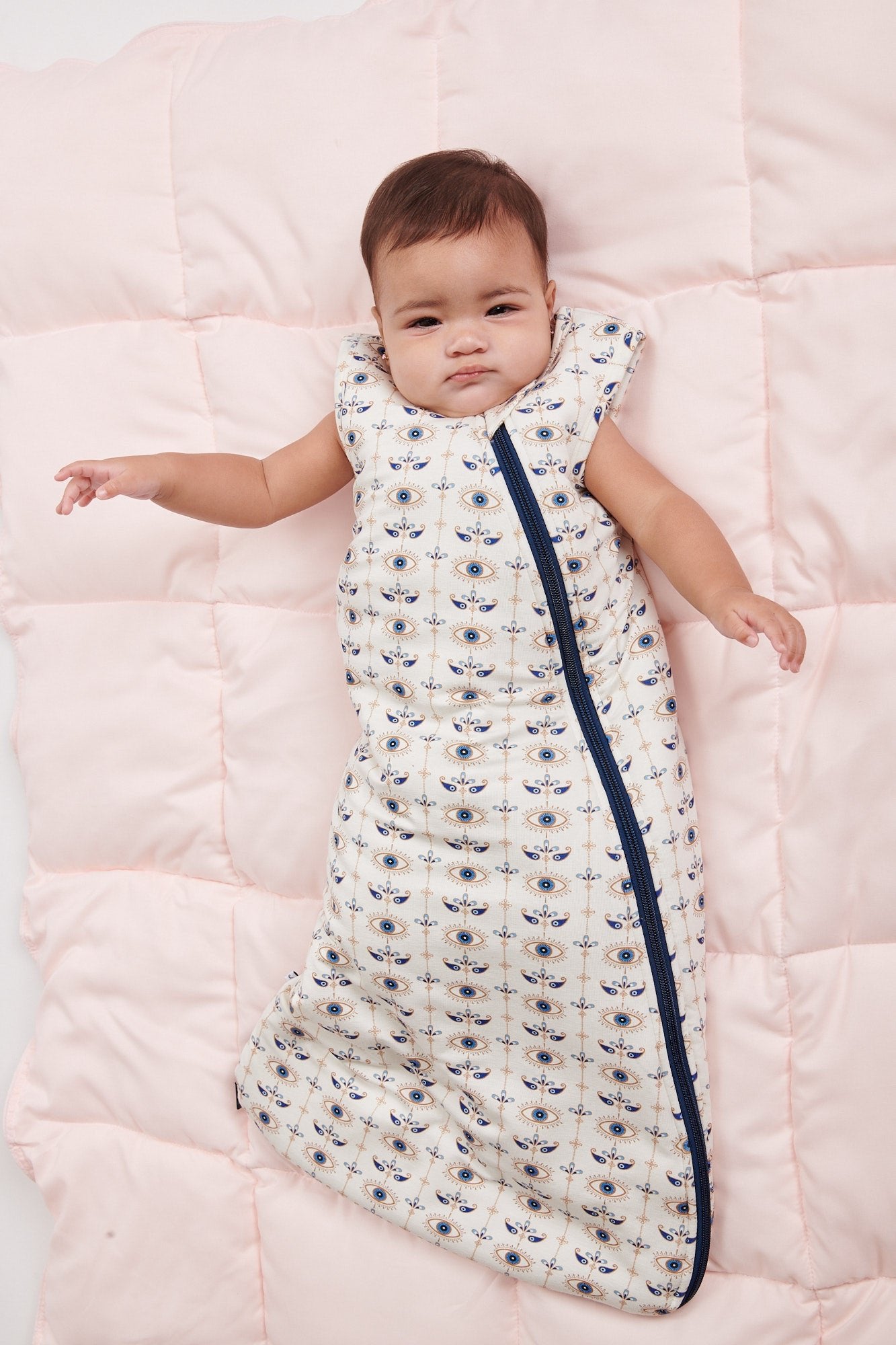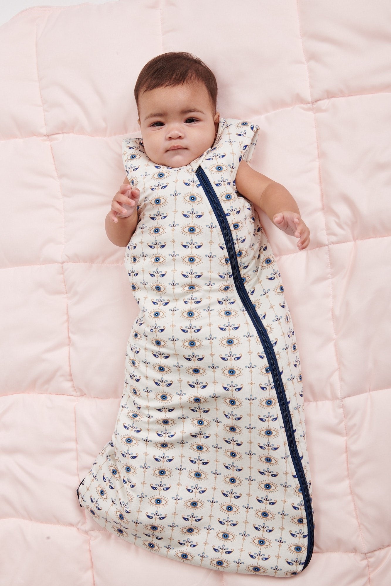 Drift into dreamland with our Tiny Talisman sleep bag, featuring a magical print of talisman-inspired motifs. Made from luxuriously soft and breathable bamboo fabric, this sleep bag is available in three TOG levels—0.5, 1.0, and 2.5—providing the perfect warmth for every season. Keep your little one cozy and secure all night long, and complete the look with a matching headband or cap for an extra touch of charm and comfort!