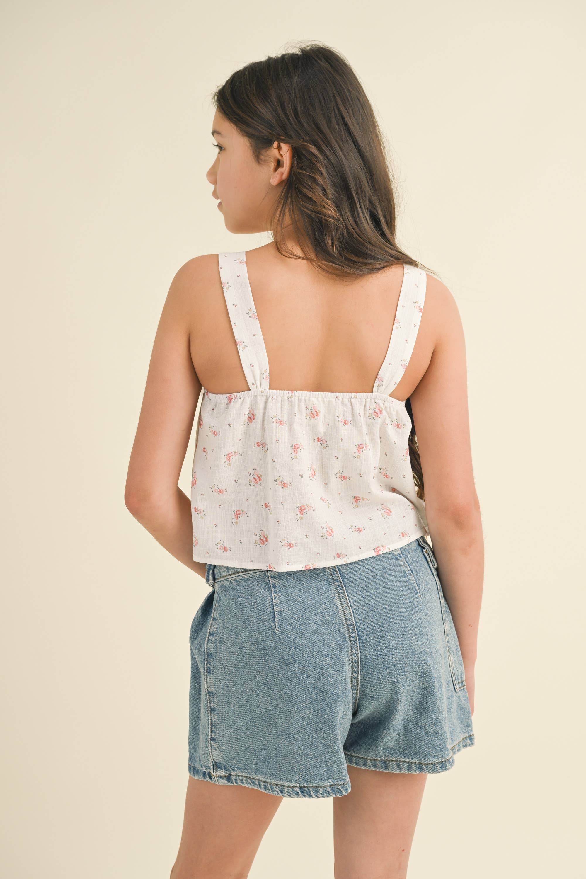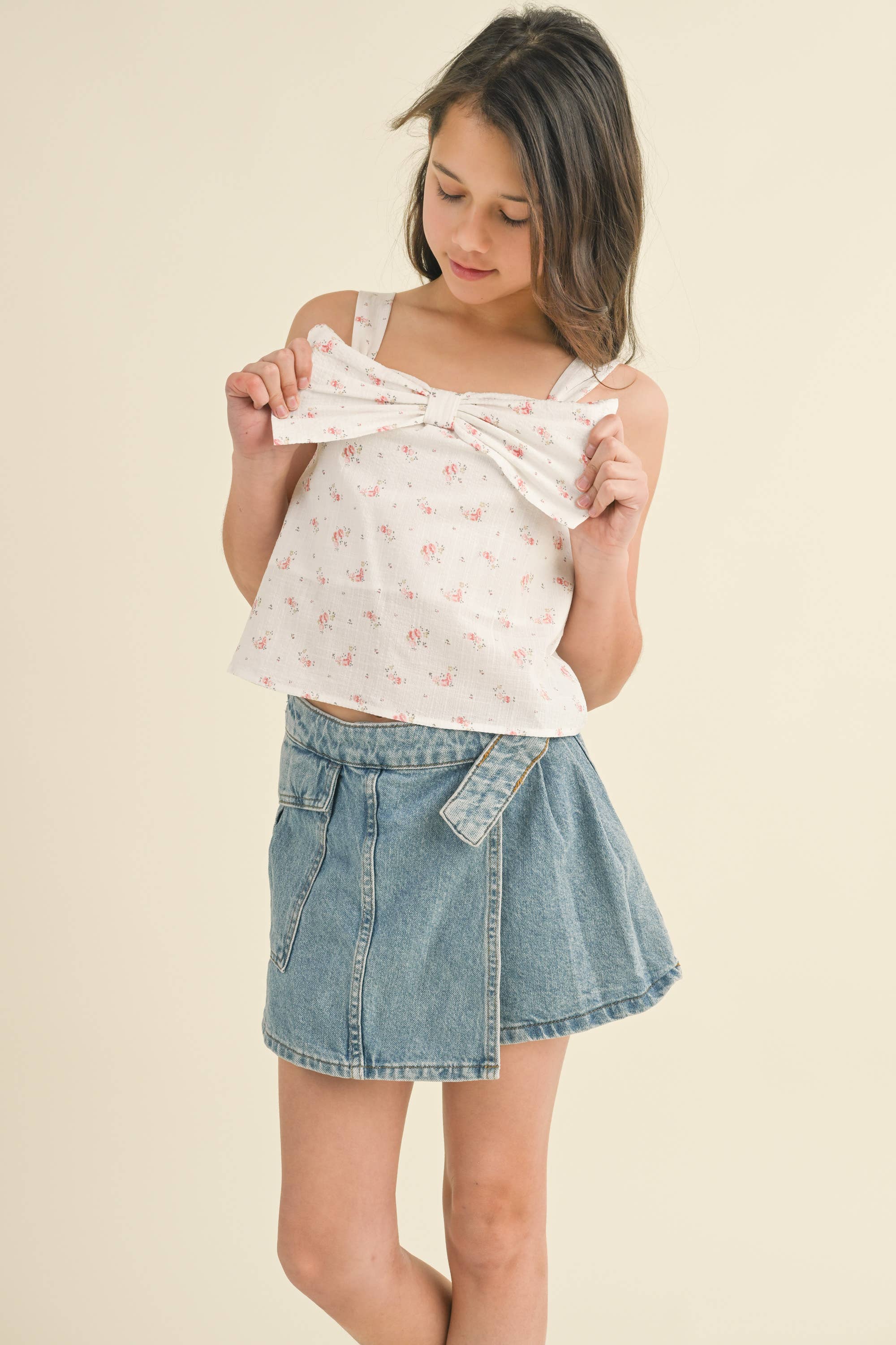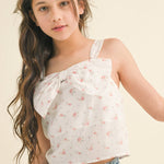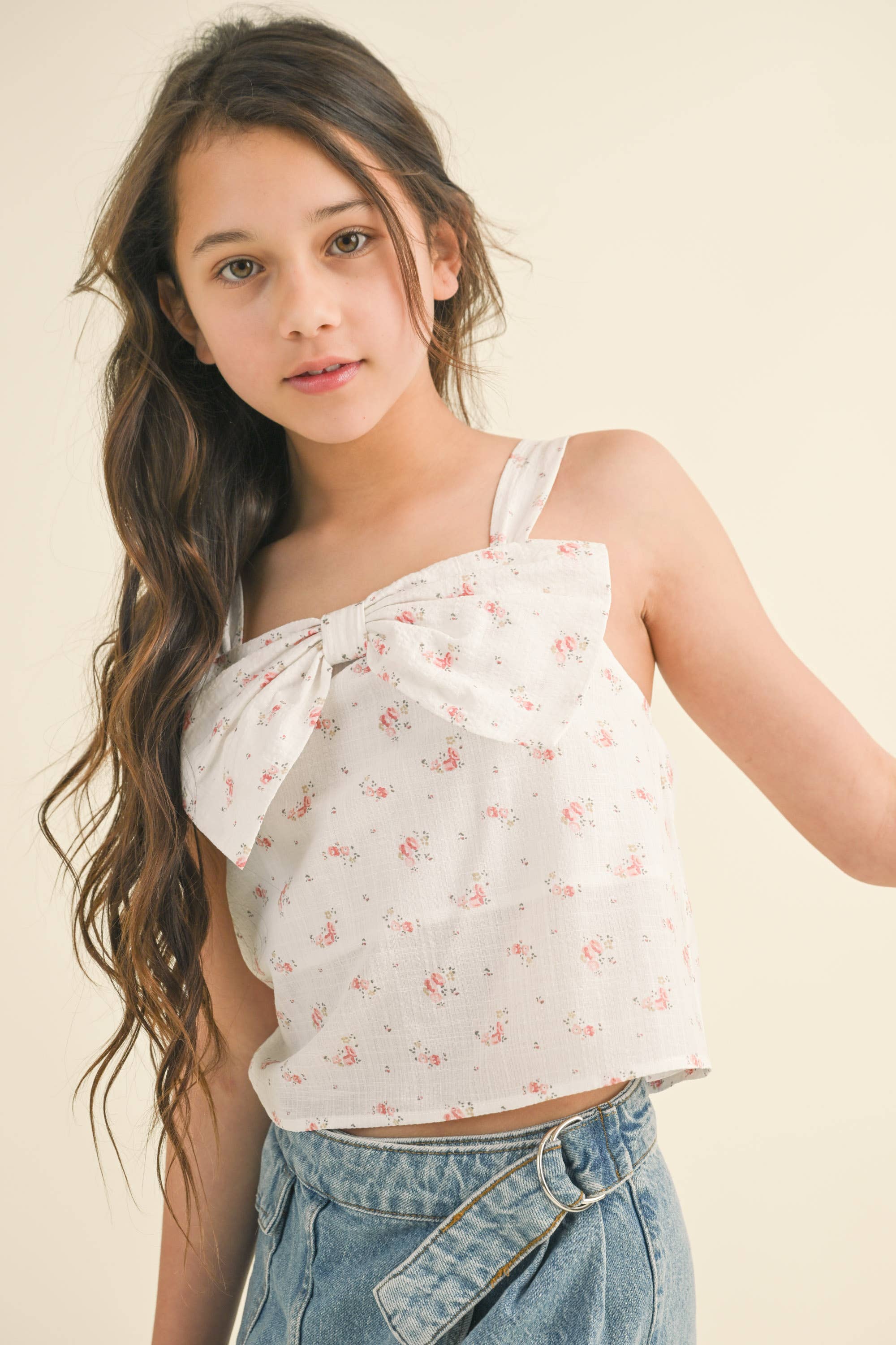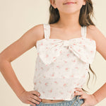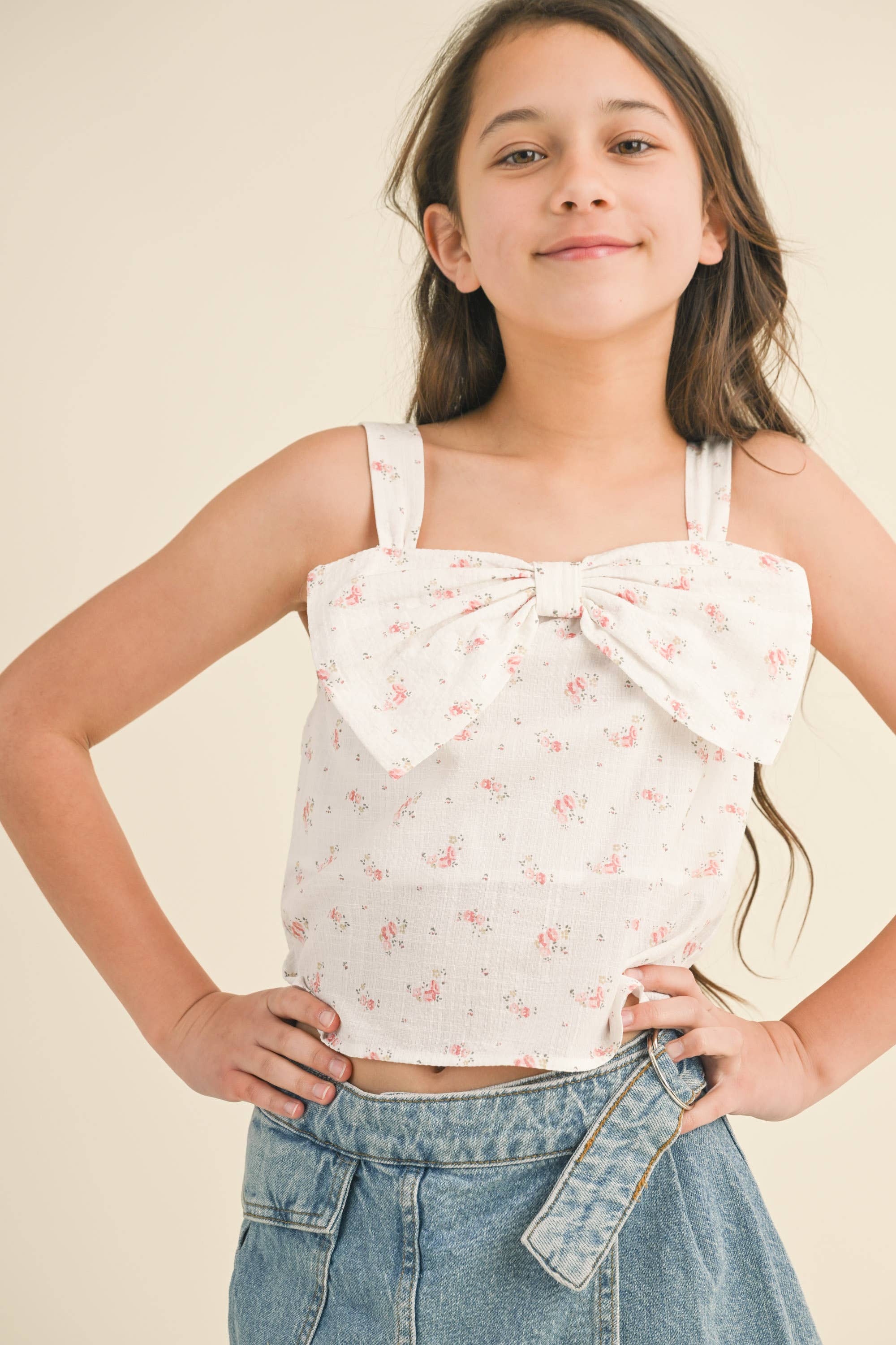 Floral Woven Cotton Sleeveless Bow Top for Girls – Tween Clothing, Kids' Fashion, Girls' Tops, Perfect for Spring & Summer