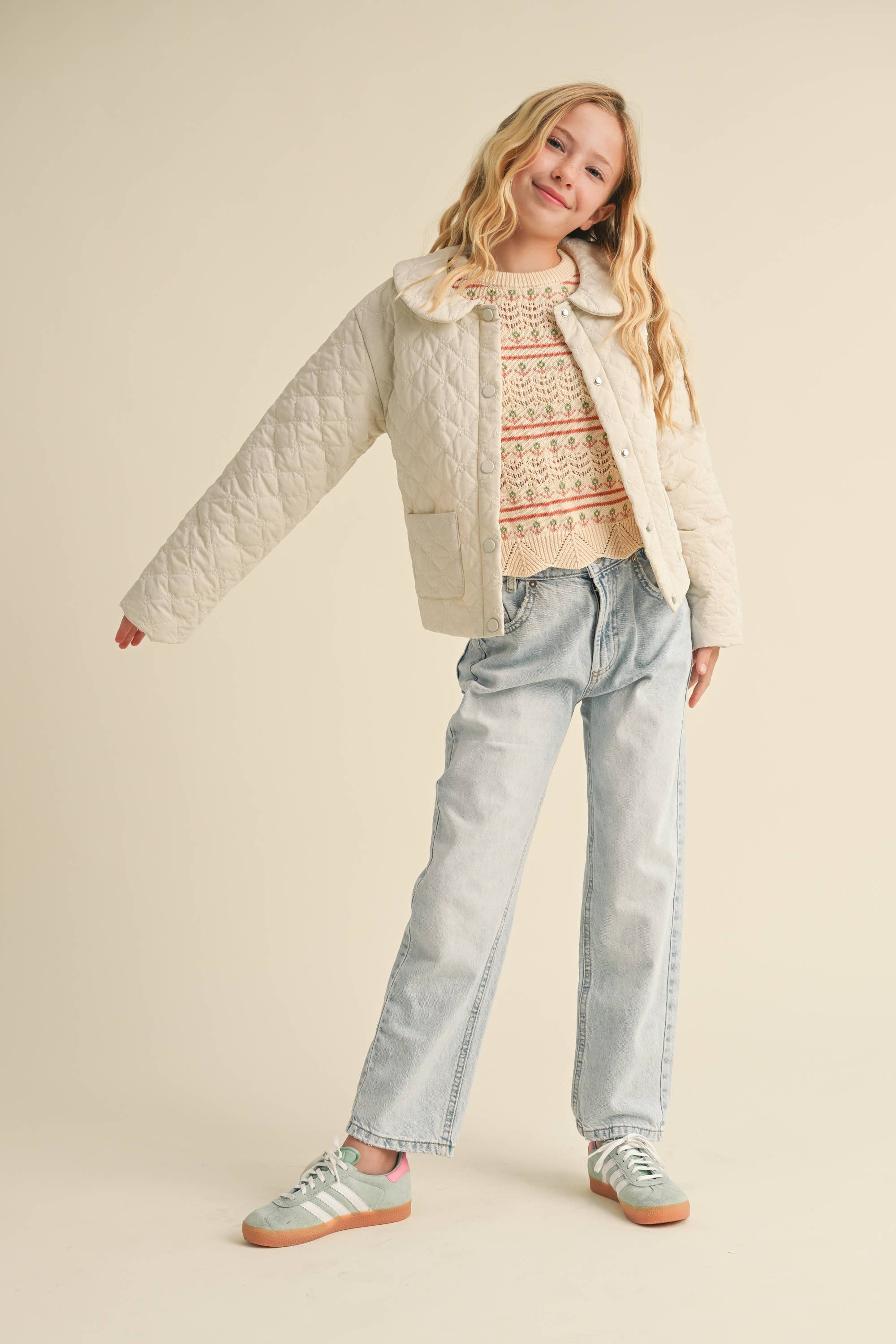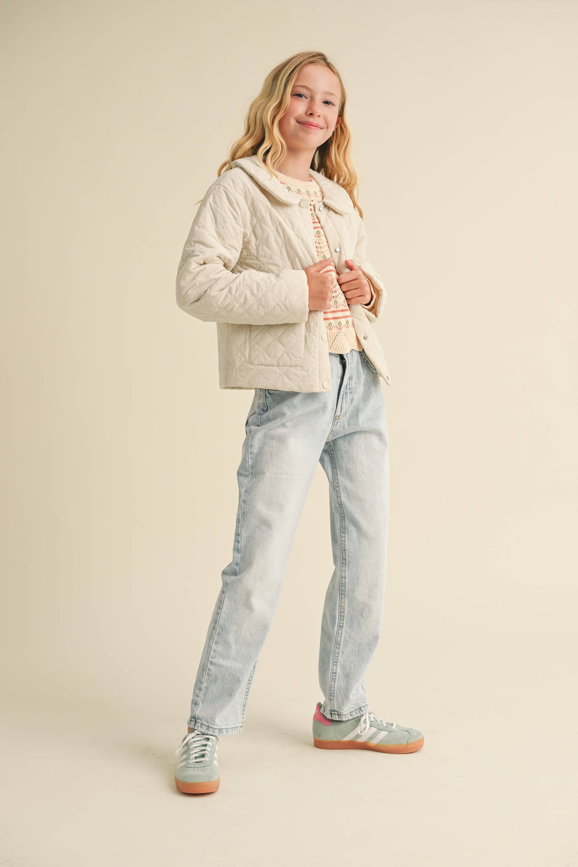 The Cream Drop Shoulder Puff Jacket is a timeless and versatile piece, offering cozy warmth and effortless style for tweens and kids. Perfect for layering during cooler days, it’s ideal for school, playdates, and family outings