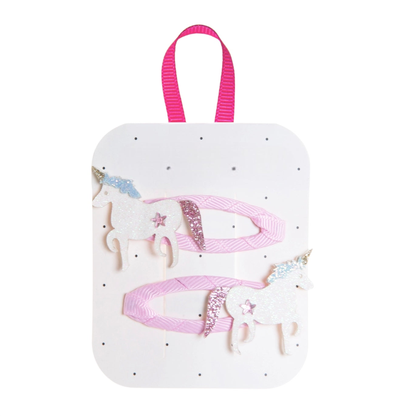 We believe in unicorns! And so can you, with our glittery unicorns! Symbolizing love, grace and beauty these elegant unicorns are made from the most gorgeous shimmering glitter, and adorned on gorgeous pink grosgrain wrapped ribbon clips.