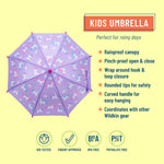 Bring some sunshine to a rainy day with Wildkin Kids Umbrellas for boys and girls. We've thought of all the details to make our umbrellas easy and safe for toddlers and big kids to handle. Our umbrellas have pinch free open and close construction to make sure little fingers stay safe. Rounded tips keep kids safe from pokes. A curved handle makes hanging super easy. Vibrant colors and classic patterns will make your little one stand out.