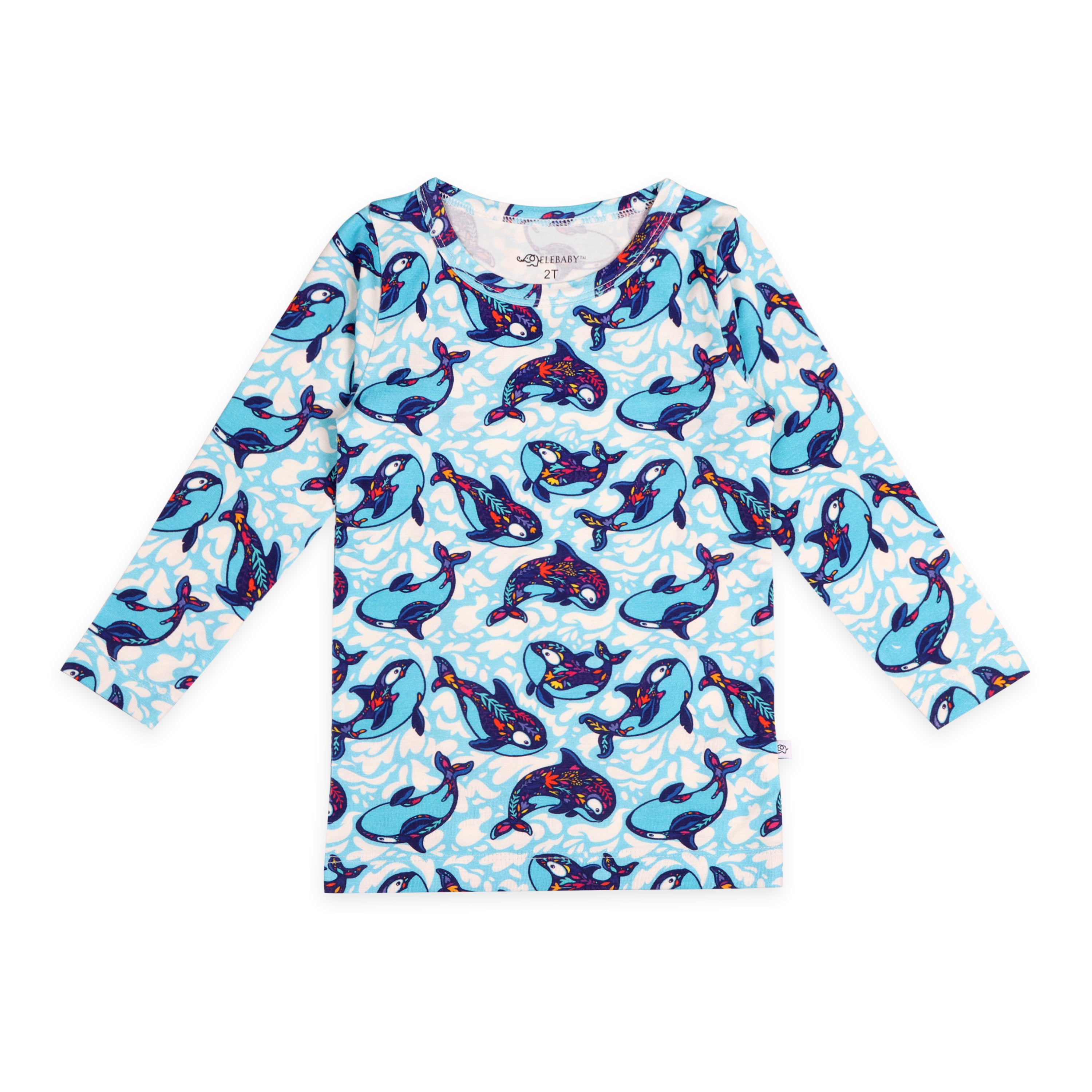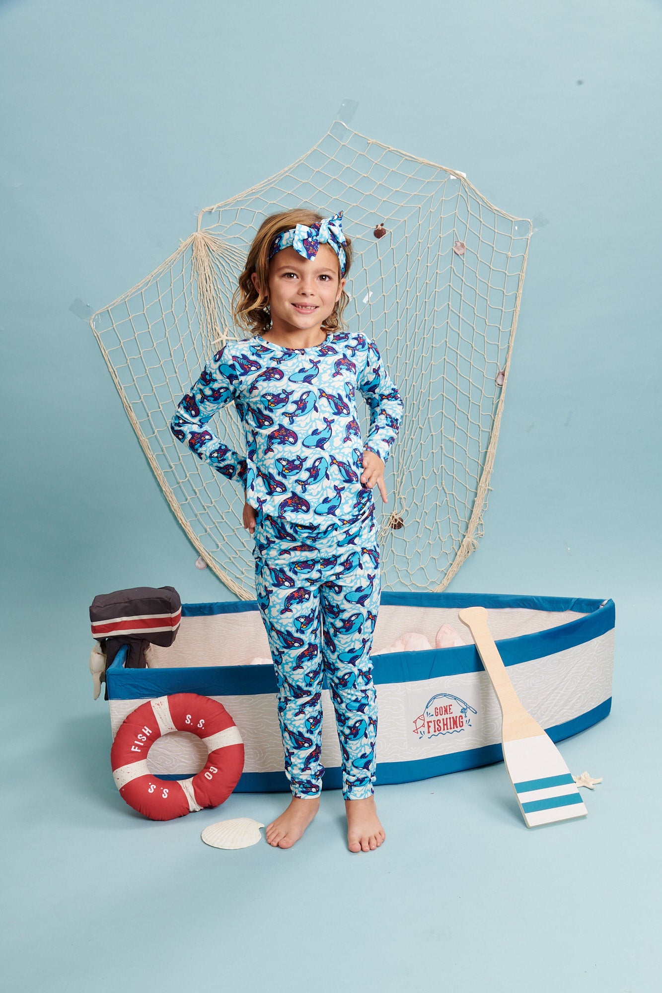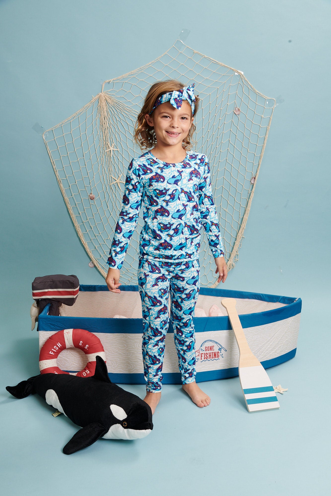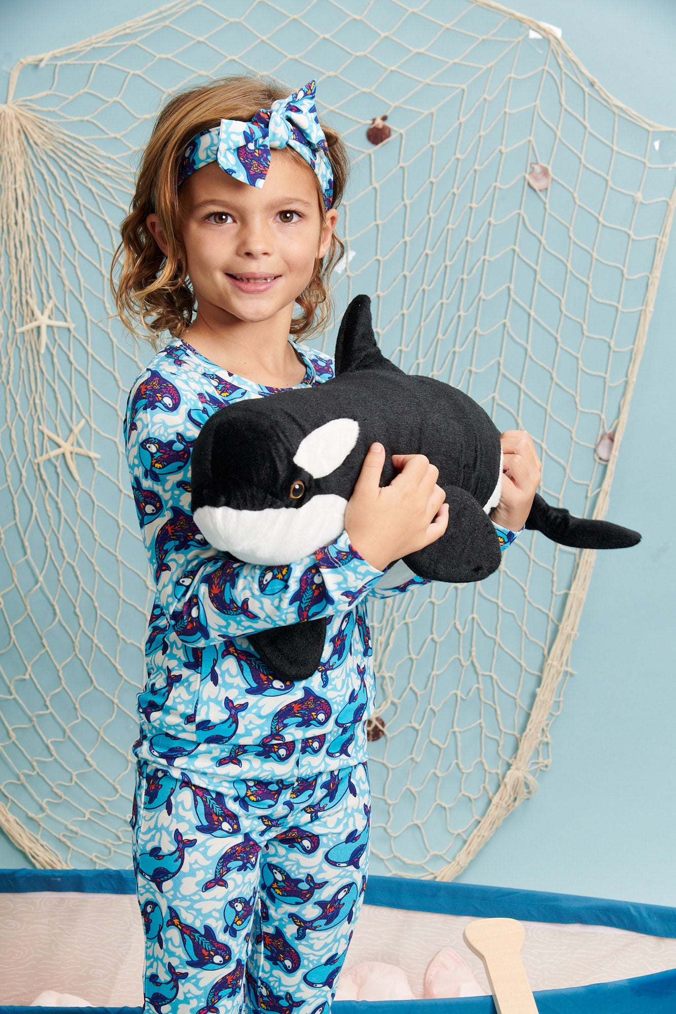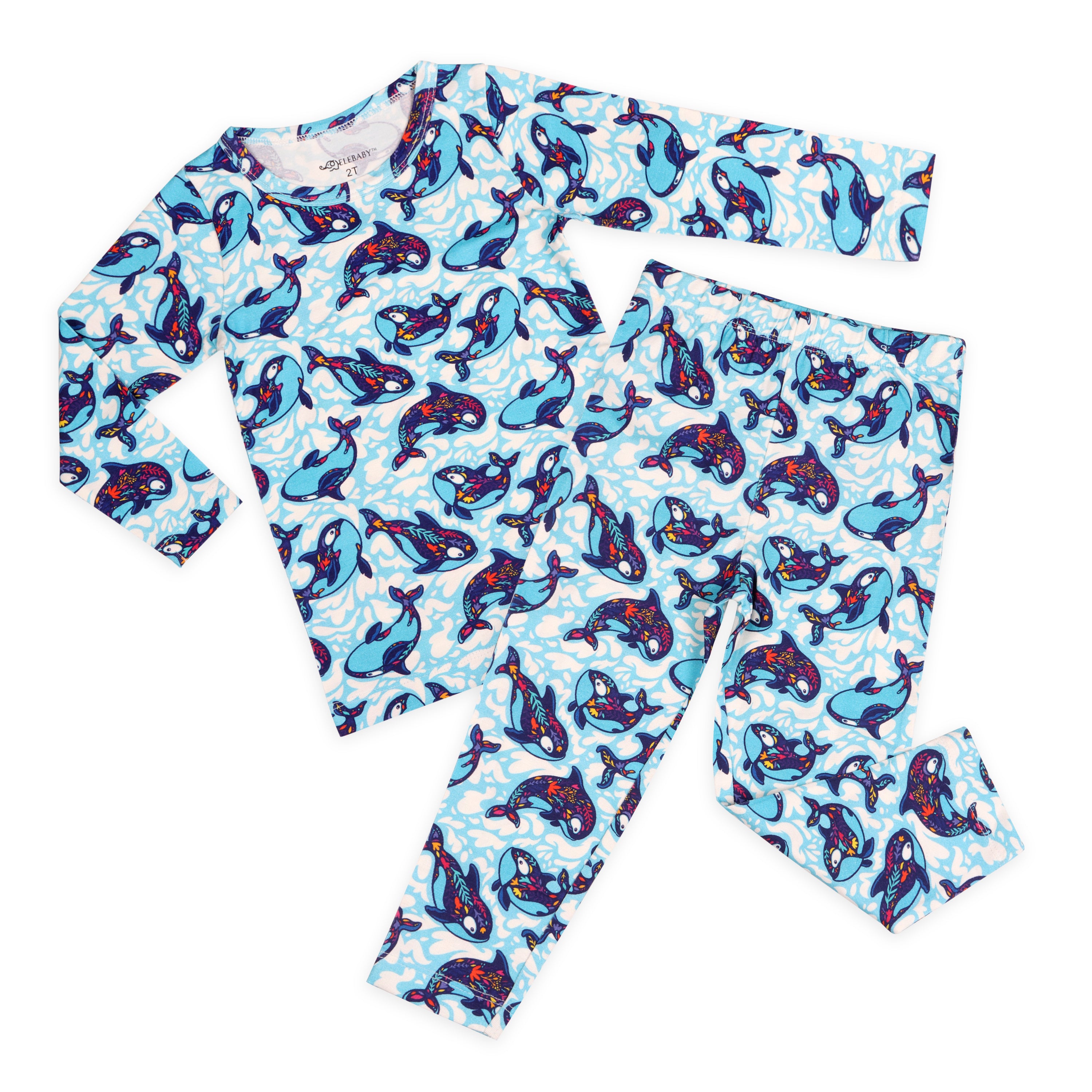 Dive into cozy dreams with our Whaley Good Time Classic Pajama Set made of bamboo! Featuring adorable orca whales playfully swimming across a serene ocean backdrop, this set is perfect for bedtime adventures. Made from luxurious Ānanda Bambu, it combines unmatched softness with breathable comfort, making it a go-to for little ocean lovers.