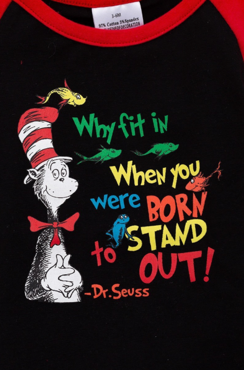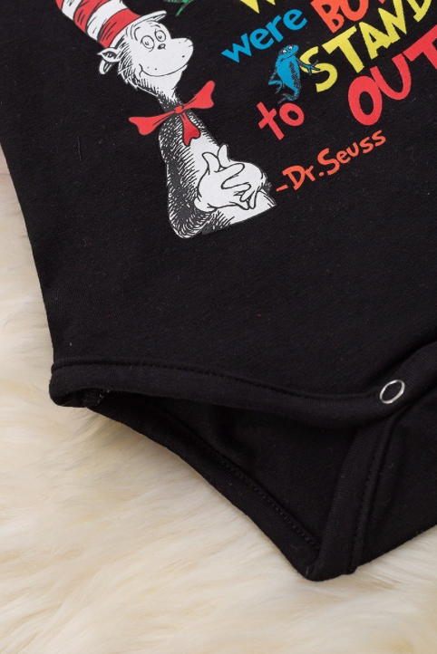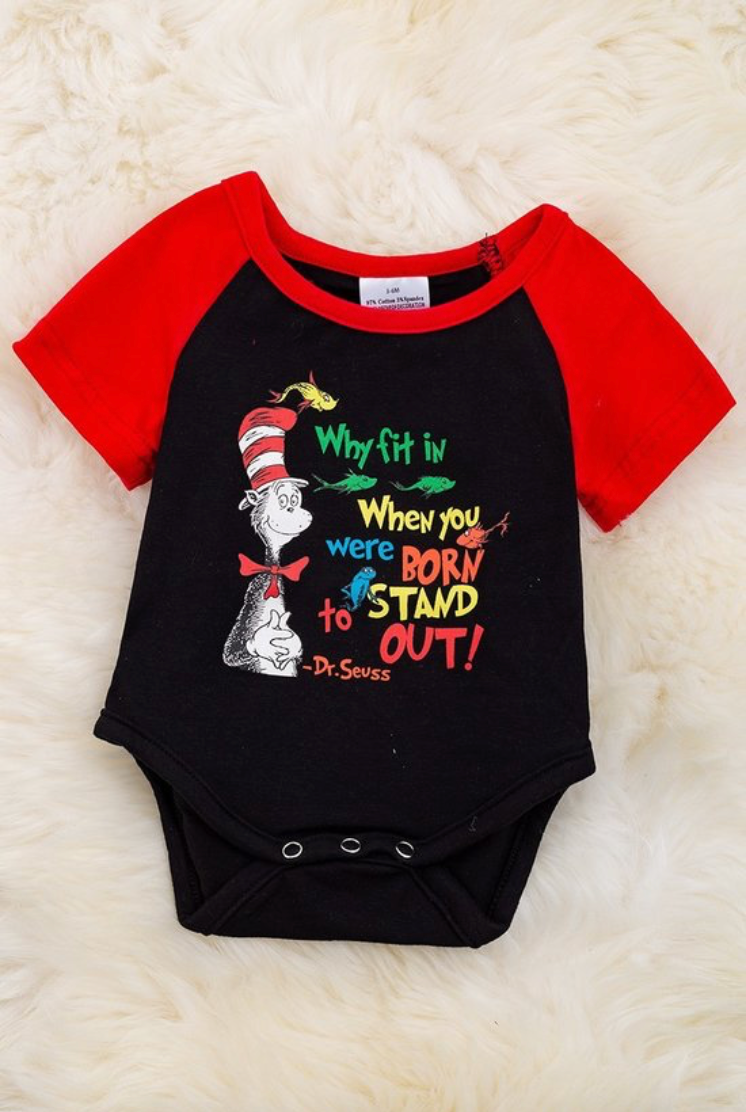 "WHY FIT IN WHEN YOU WERE BORN TO STAND OUT" Black Onesie with Red Sleeves