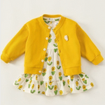 The accompanying Yellow Cardigan adds a touch of coziness and completes the look with its soft and cuddly cotton fabric. Whether it's a breezy spring day or a cool summer evening, this ensemble keeps your child stylish and comfortable throughout the day.