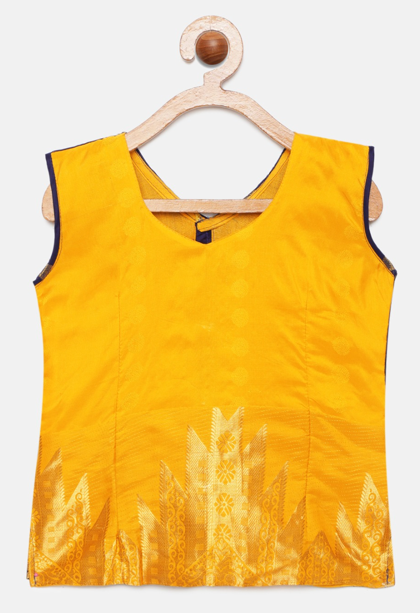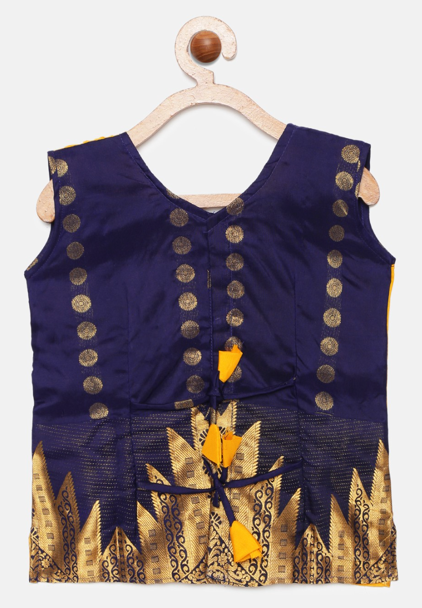 Yellow & Navy Ready to wear Pavadai Lehenga & Blouse Set