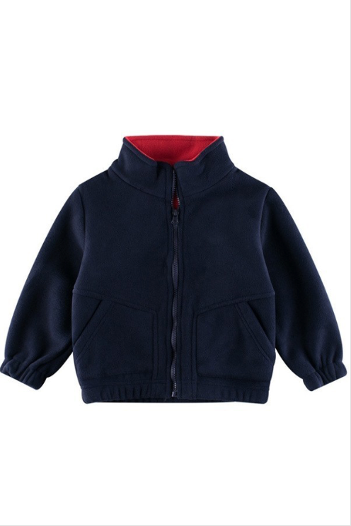 Stay warm and stylish with our Kids Outerwear Fleece Zipper Jacket! This cozy jacket is perfect for chilly days, featuring a fun and easy-to-use zipper to keep your little one snug. In either choice of red or navy blue- it's a comfortable design with pockets, it's the ideal companion for outdoor adventures and playtime. Let your child zip up in comfort and explore the world with confidence!